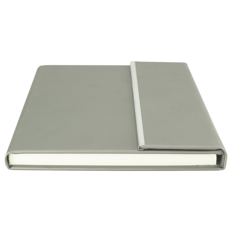 Deluxe Cuaderno Cierre Imantado (SKU N49) para regalos corporativos y campañas de empresa. Compatible con estrategias de regalos corporativos, incluyendo soluciones en textil, sublimación y DTF. Cuaderno tamaño A5, cubierta de Termo-PU gris, con cierre traslape magnético y banda metálica plateada. Interior 80 hojas lineadas amarillas de 80gsm. Presentación individual en bolsa de polipropileno. • Tamaño: 14.5 x 21.5 x 1.5 cm. • Colores:Gris (07) • Sugerencia: Serigrafía. • Presentación: Bolsa de Polipropileno. • Material: Cubierta de Termo-PU Cotiza formato corporativo con personalización de logo y cobertura en Chile.