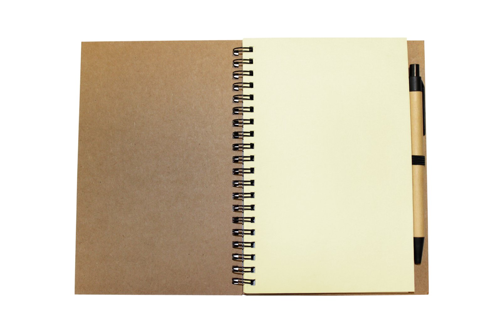 LIBRETA "ECOLÓGICA" (SKU T164) para regalos corporativos y campañas de empresa. Compatible con estrategias de regalos corporativos, incluyendo soluciones en textil, sublimación y DTF. 13,8 x 18 x 1,5 cm Elaborada con papel reciclado. Incluye bolígrafo biodegradable. Posee 70 hojas de color amarillo en croquis (sin líneas). Cotiza formato corporativo con personalización de logo y cobertura en Chile.