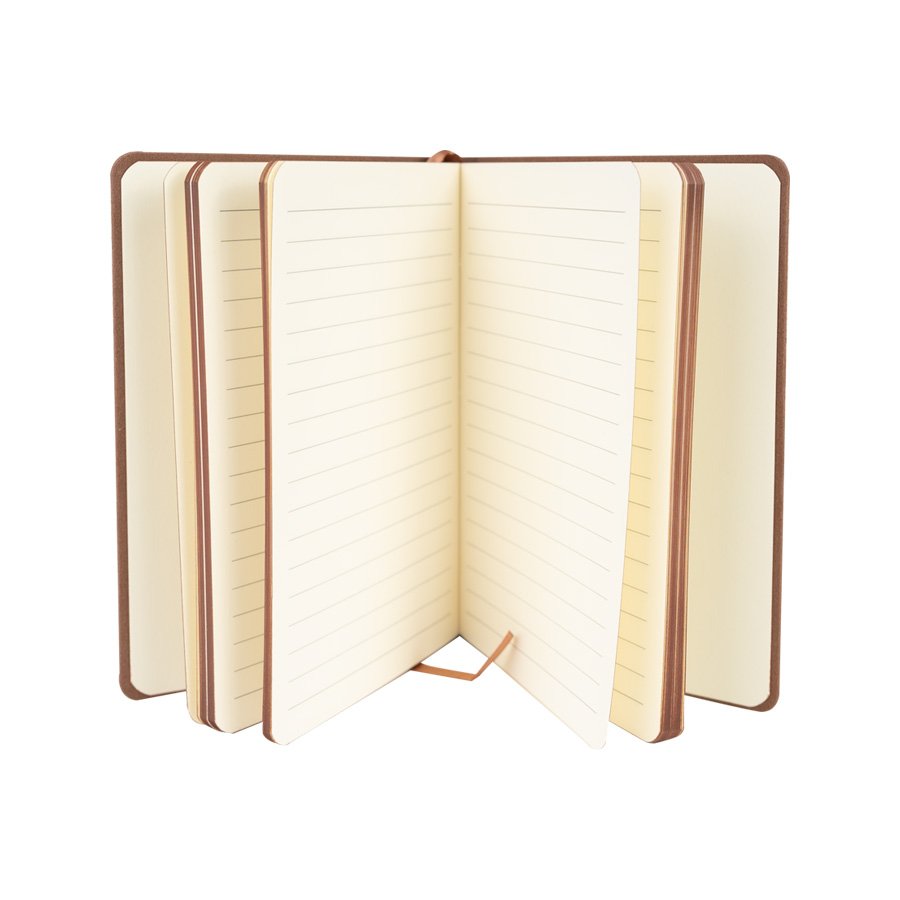 Libreta encobrizada de PU eco-cuero (SKU N87) para regalos corporativos y campañas de empresa. Compatible con estrategias de regalos corporativos, incluyendo soluciones en textil, sublimación y DTF. Libreta tamaño A6, con cubierta de PU eco-cuero de 2mm de espesor y lomo pintado de color al tono. Interior 80 hojas lineadas amarillas de 80gsm. Incluye banda separador de hojas al tono. Presentación individual en bolsa de polipropileno. •Tamaño: 10.5 x 14.5 x 1.3 cm. •Talla: A6 •Colores: Cobre (44) •Sugerencia de Impresión: Serigrafía, Cuño seco, Grabado Láser. •Presentación: Bolsa de Polipropileno. •Material: PU eco-cuero, papel. Cotiza formato corporativo con personalización de logo y cobertura en Chile.