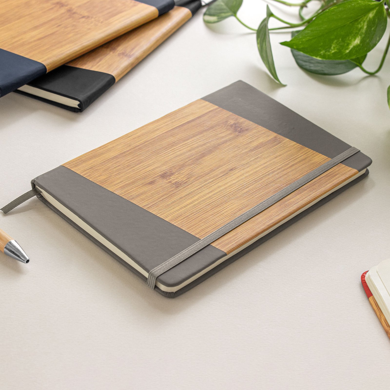 Libreta "ESCANDINAVA" (SKU T686) para regalos corporativos y campañas de empresa. Compatible con estrategias de regalos corporativos, incluyendo soluciones en textil, sublimación y DTF. 21 x 14 cm. (A5). PU + Papel. Libreta. Tapa dura recubierta en poliuretano, con estampado simil bambú. Interior 80 hojas rayadas en papel de 70 g. Cinta señaladora y cierre con banda elástica del mismo color. Cotiza formato corporativo con personalización de logo y cobertura en Chile.