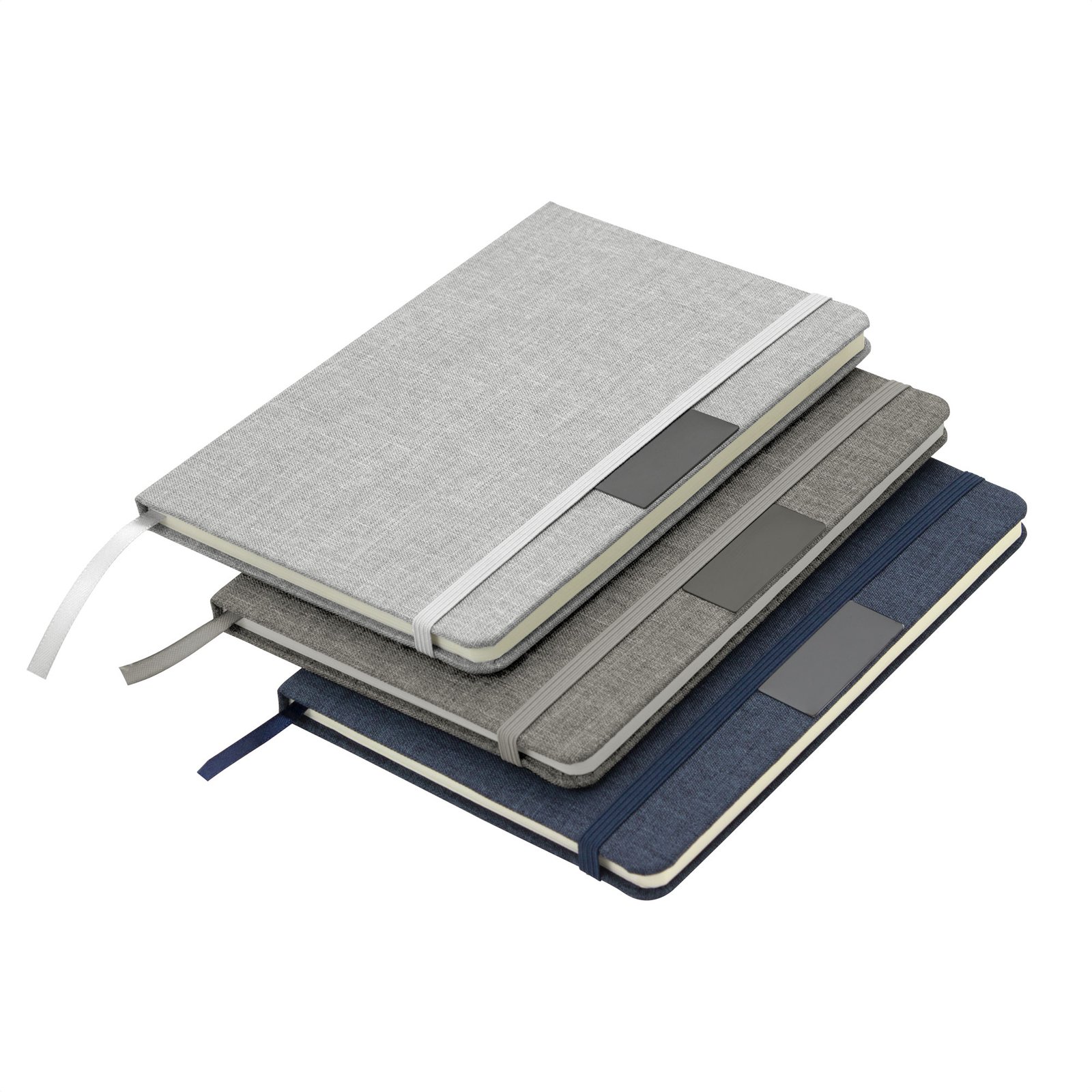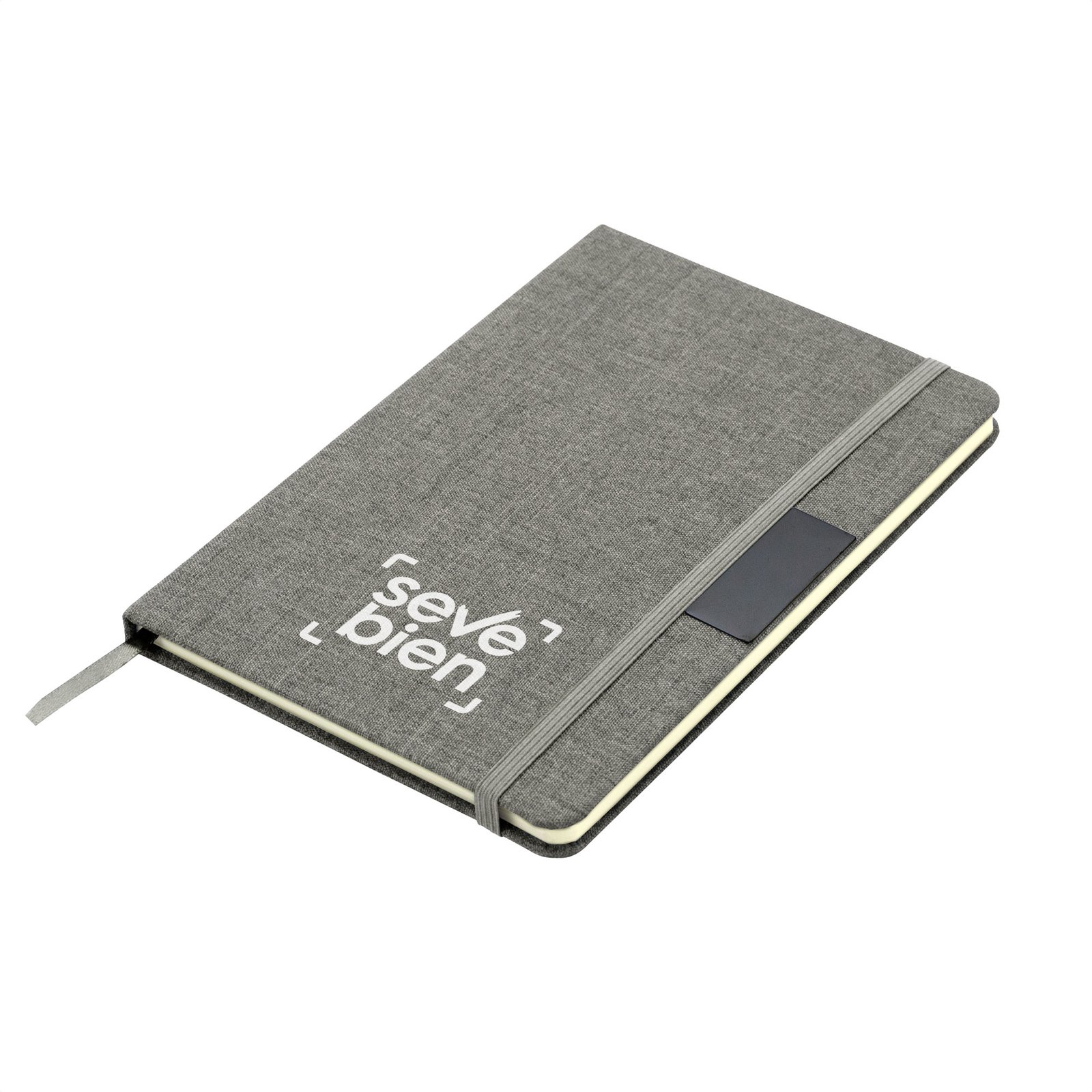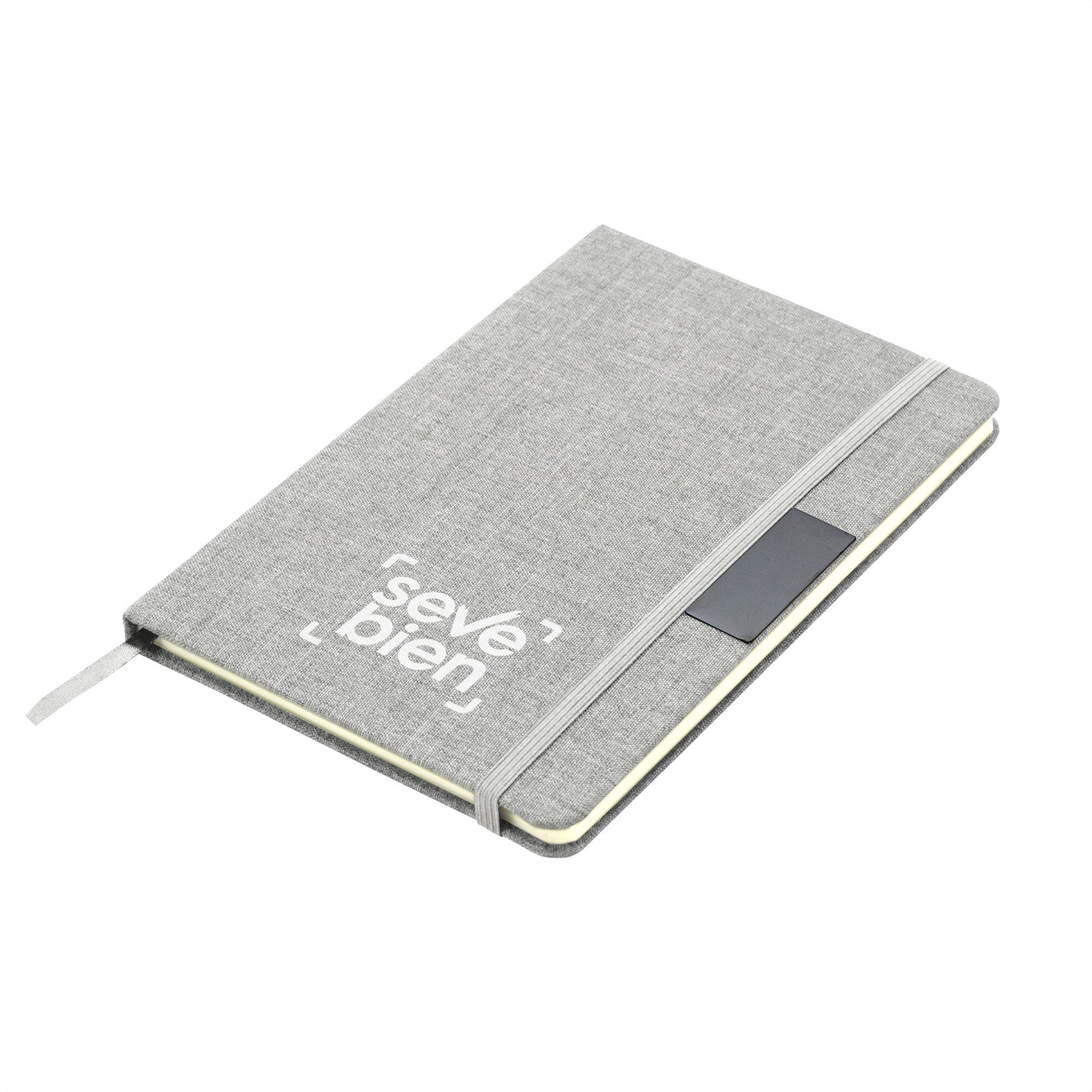 Libreta "GRETA" (SKU T718) para regalos corporativos y campañas de empresa. Prioridad comercial en líneas de textil, sublimación y DTF para branding corporativo. Sostenibilidad elegante.Libreta con placa metálica. Tapa de cartón de 300g recubierta en RPET 310. Placa metálica de 5 x 2 cm. Interior de 80 hojas rayadas en papel obra de 70g. Encuadernación cosida. Cierre con banda elástica del mismo color de la tapa.Medidas: 14 x 21 x 1,5 cm. Materiales: Papel, Cartón, RPET, metal. Cotiza formato corporativo con personalización de logo y cobertura en Chile.