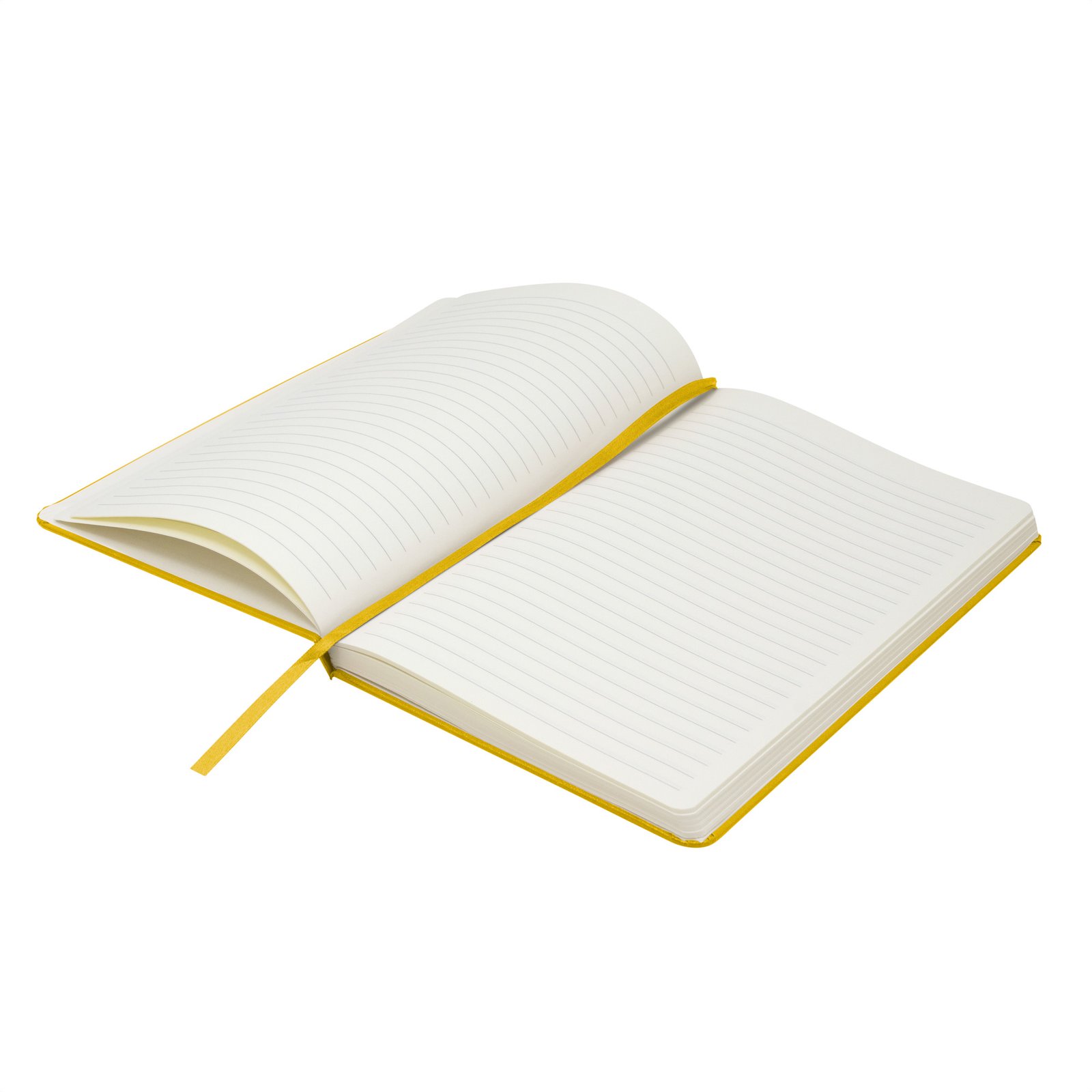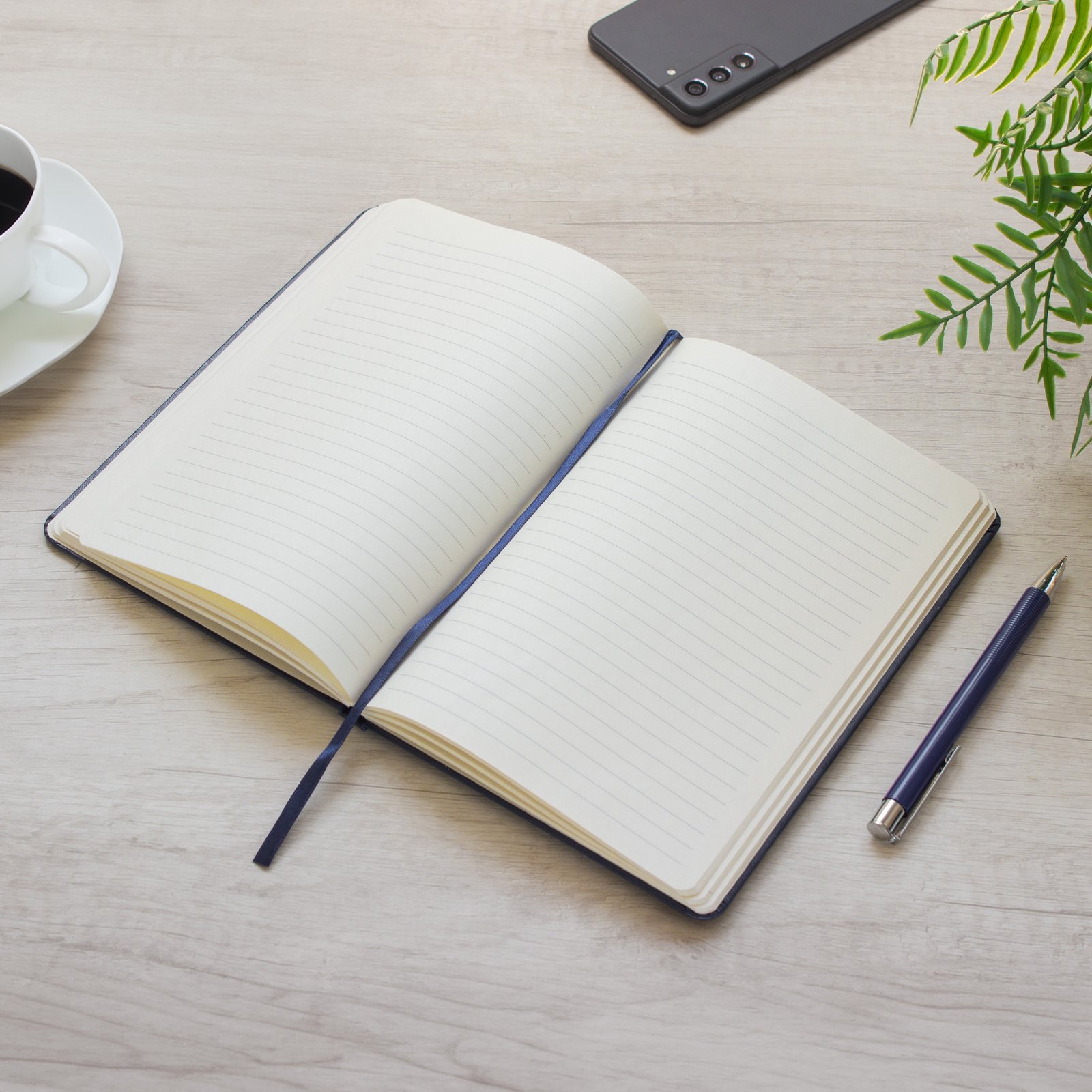 Libreta "MEDIUM" (SKU T723) para regalos corporativos y campañas de empresa. Compatible con estrategias de regalos corporativos, incluyendo soluciones en textil, sublimación y DTF. Mantén tus ideas organizadas.Libreta. Tapa de cartón de 300g recubierta en poliuretano de diferentes colores. Interior de 80 hojas rayadas en papel obra crema de 70g. Encuadernación cosido. Incluye cinta señaladora del color de la tapa. Cierre con banda elástica del mismo color.Medidas: 14 x 21 x 1,5 cm. Materiales: Papel, Cartón, Poliuretano. Cotiza formato corporativo con personalización de logo y cobertura en Chile.