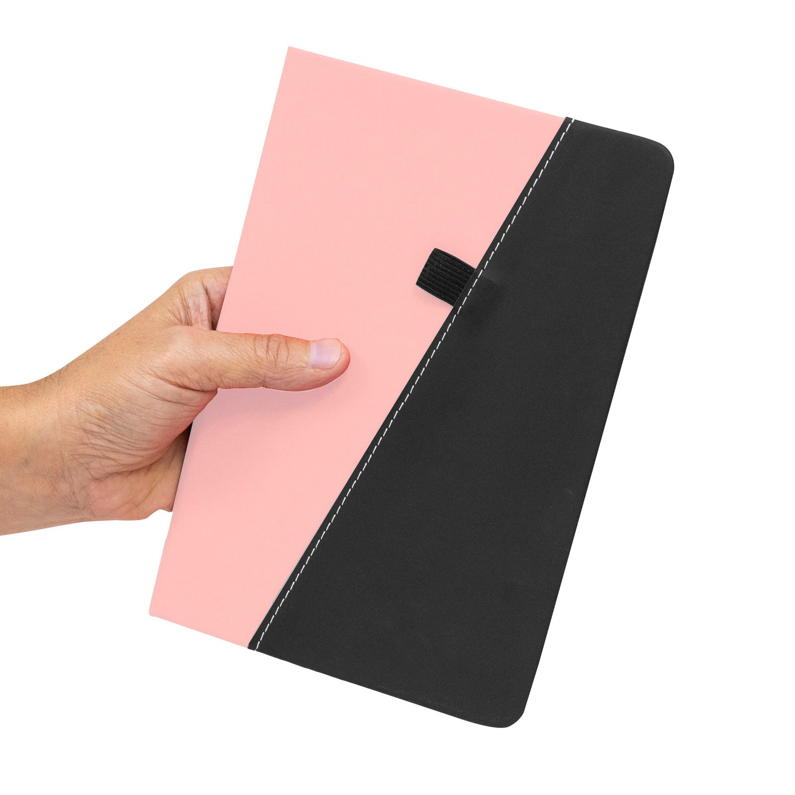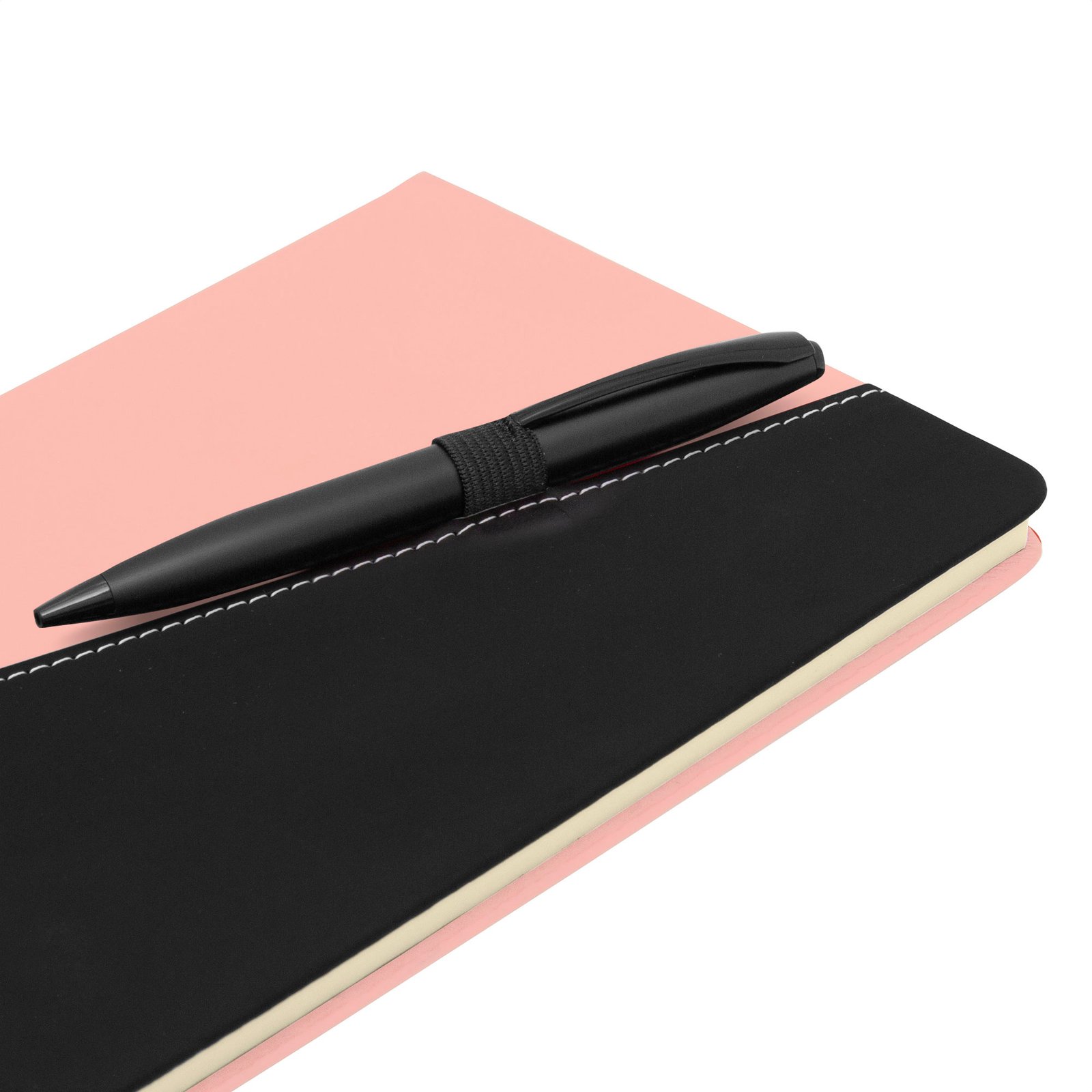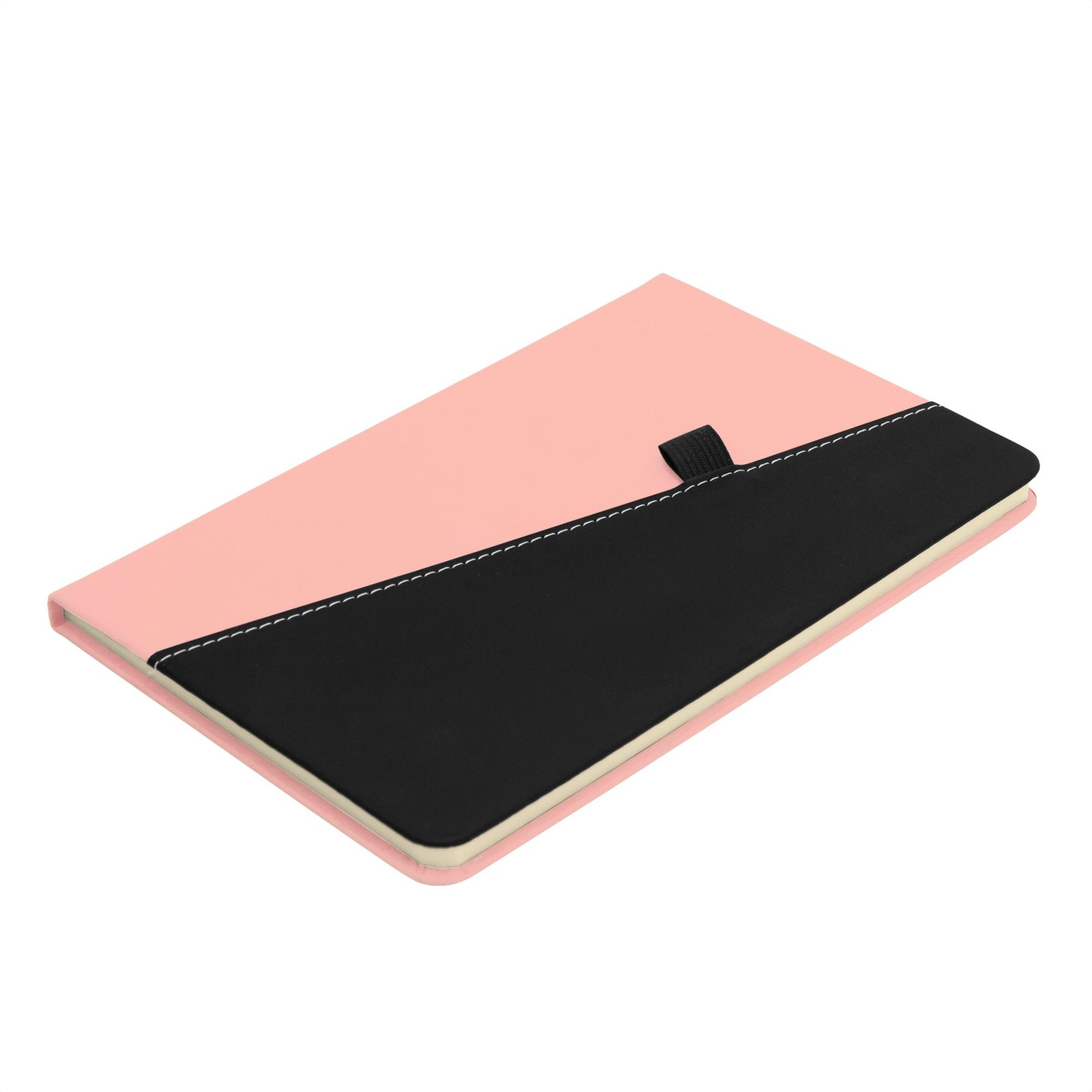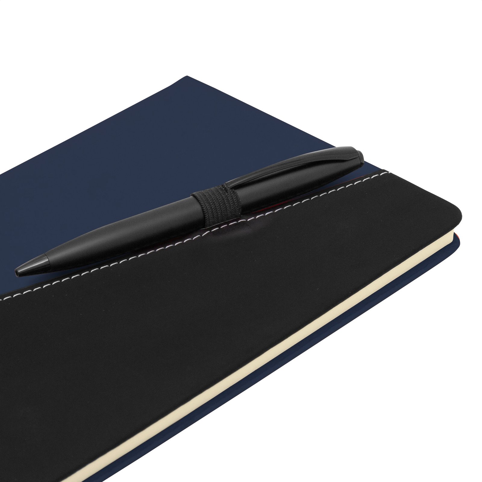 Libreta "TREK" (SKU T810) para regalos corporativos y campañas de empresa. Compatible con estrategias de regalos corporativos, incluyendo soluciones en textil, sublimación y DTF. Lista para acompañar cada planLibreta. Tapa de cartón rígido recubierta en poliuretano bicolor (diferentes colores combinados con negro). Interior de 80 hojas rayadas en papel obra de 70g. Encuadernación cosida. Inlcuye portalápices elástico color negro.Medidas: 14,5 x 21 x 1,5 cm. Materiales: Papel reciclado y poliuretano. Cotiza formato corporativo con personalización de logo y cobertura en Chile.