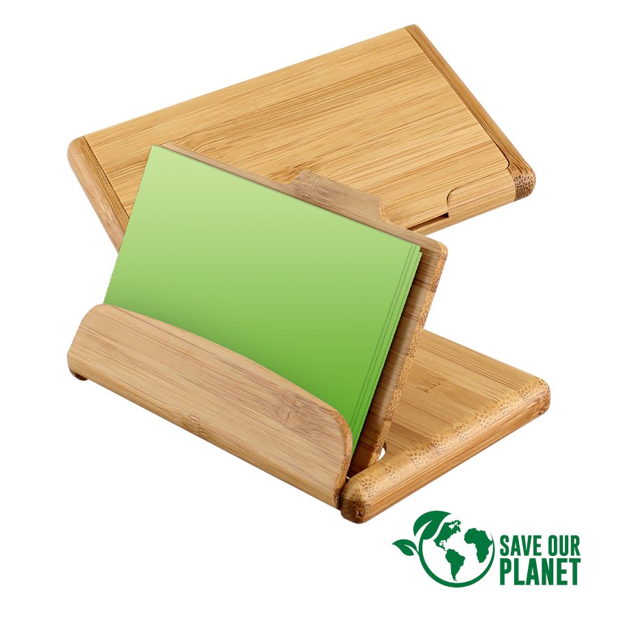 Tarjetero de Bamboo (SKU B80) para regalos corporativos y campañas de empresa. Compatible con estrategias de regalos corporativos, incluyendo soluciones en textil, sublimación y DTF. Porta-Tarjetas de Visita de sobremesa 100% madera Bamboo. Para tarjetas de hasta 7.8 x 4.8 cm máximo. • Tamaño: 10.8 x 7 x 1.2 cm. • Colores:Madera (12). • Sugerencia: Serigrafía, Grabado Láser, Cama plana (Impresión Digital). Cotiza formato corporativo con personalización de logo y cobertura en Chile.