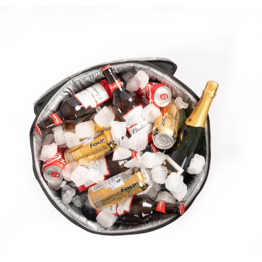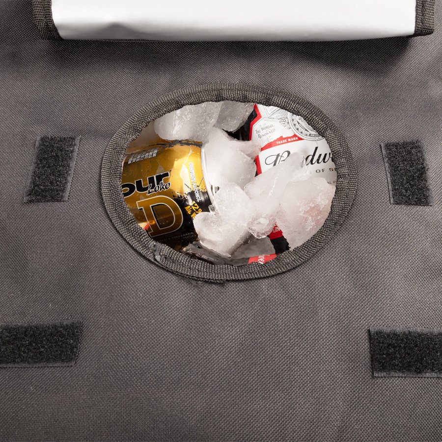 Cooler con patas "PATAGONIA" 50L (SKU G30) para regalos corporativos y campañas de empresa. Prioridad comercial en líneas de textil, sublimación y DTF para branding corporativo. Bolso cooler grande de 50 litros de capacidad, en tela poliéster 600D/PVC. Interior térmico aislante de PEVA y acolchado con esponja PE FOAM. Cuenta con asas laterales para sujeción, cierre eclair 360°, ventana cuadrada con cierre velcro en la parte superior (tapa), para retiro ágil de productos y tapón de goma inferior para despiche de líquido acumulado dentro del cooler. Montado sobre estructura de patas metálicas plegables color negro, presentadas en bolsa de poliéster negro. •Tamaño: Bolso cooler: 48 x 30 x 35 cm. / Montado con p… Cotiza formato corporativo con personalización de logo y cobertura en Chile.