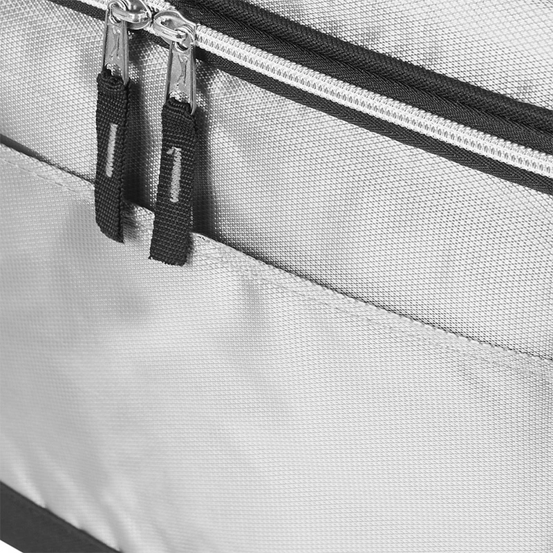 Cooler Grand (SKU 167) para regalos corporativos y campañas de empresa. Compatible con estrategias de regalos corporativos, incluyendo soluciones en textil, sublimación y DTF. Realizado en 600D Polyester y 420D Dobby, con interior realizado en aluminio. Compartimiento principal con doble cierre y bolsillo frontal con velcro. Medidas: 34,5 x 31 x 29,5 cm. Capacidad: 31,5 Lts. Foto ilustrativa, no incluye bebida. Cotiza formato corporativo con personalización de logo y cobertura en Chile.