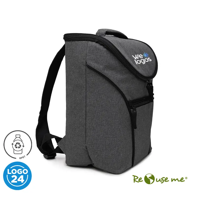 Cooler Refresh (SKU 147) para regalos corporativos y campañas de empresa. Prioridad comercial en líneas de textil, sublimación y DTF para branding corporativo. Realizado en RPET/Polyester. Interior térmico. Formato tipo mochila. Capacidad: 16 Lts. ReUseMe. Cotiza formato corporativo con personalización de logo y cobertura en Chile.
