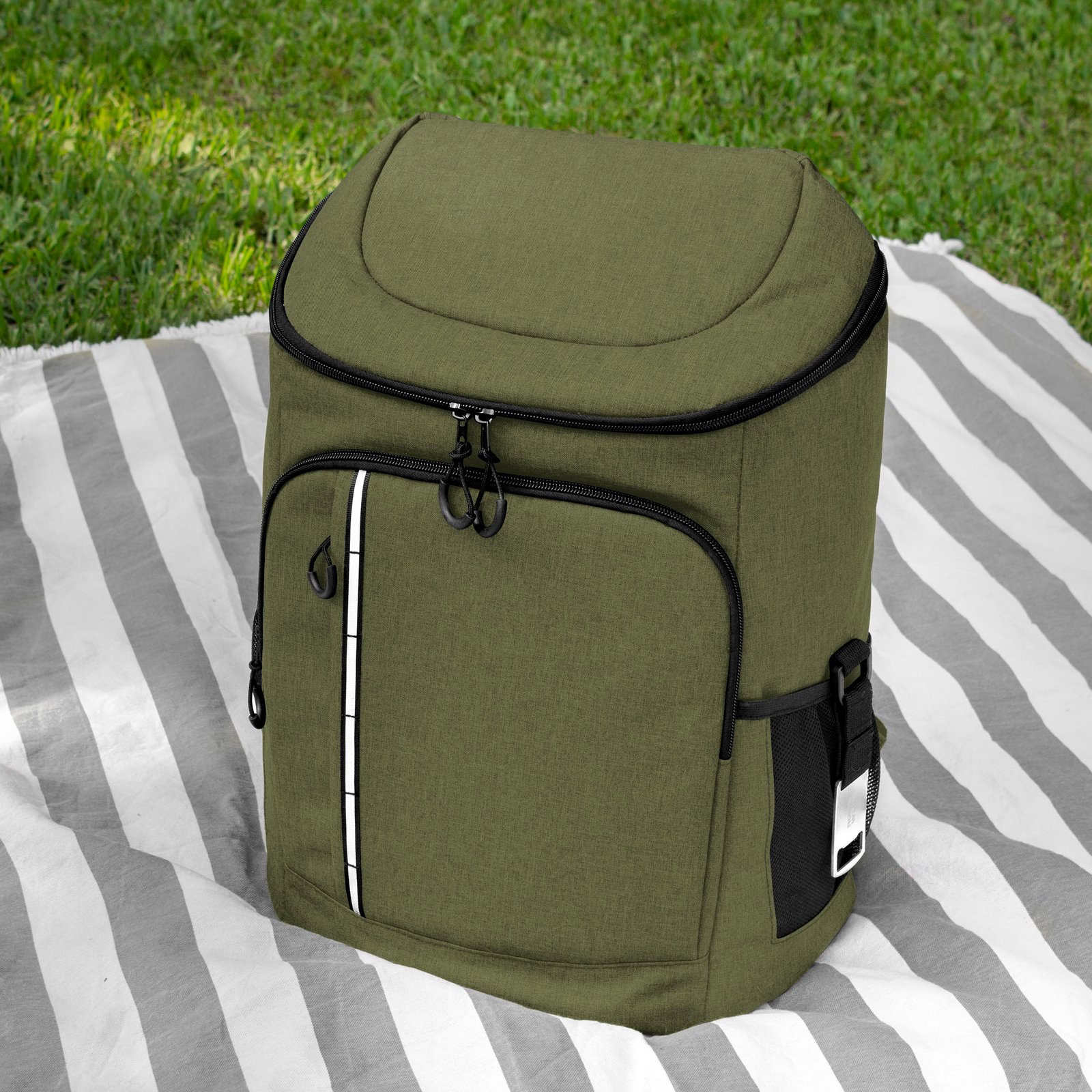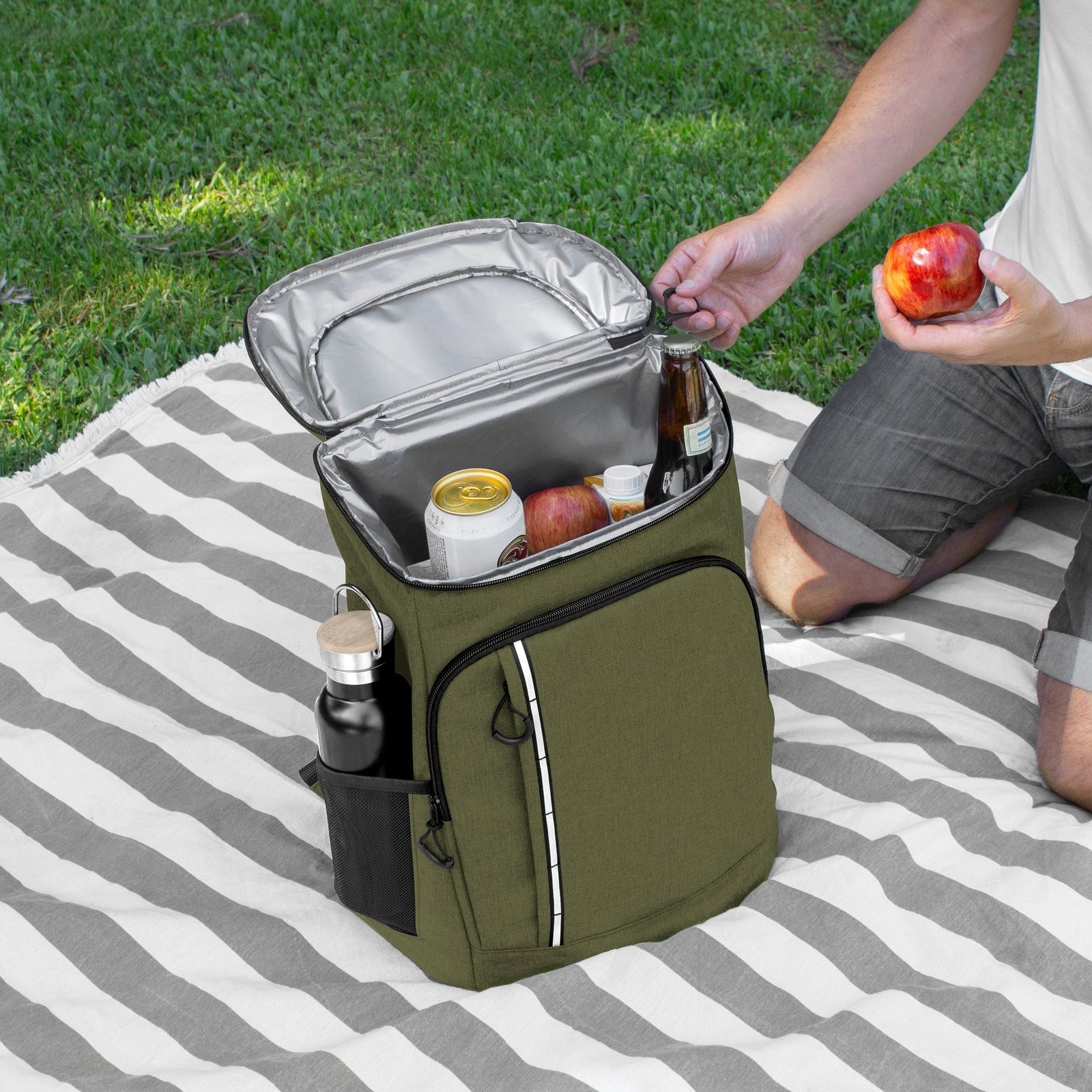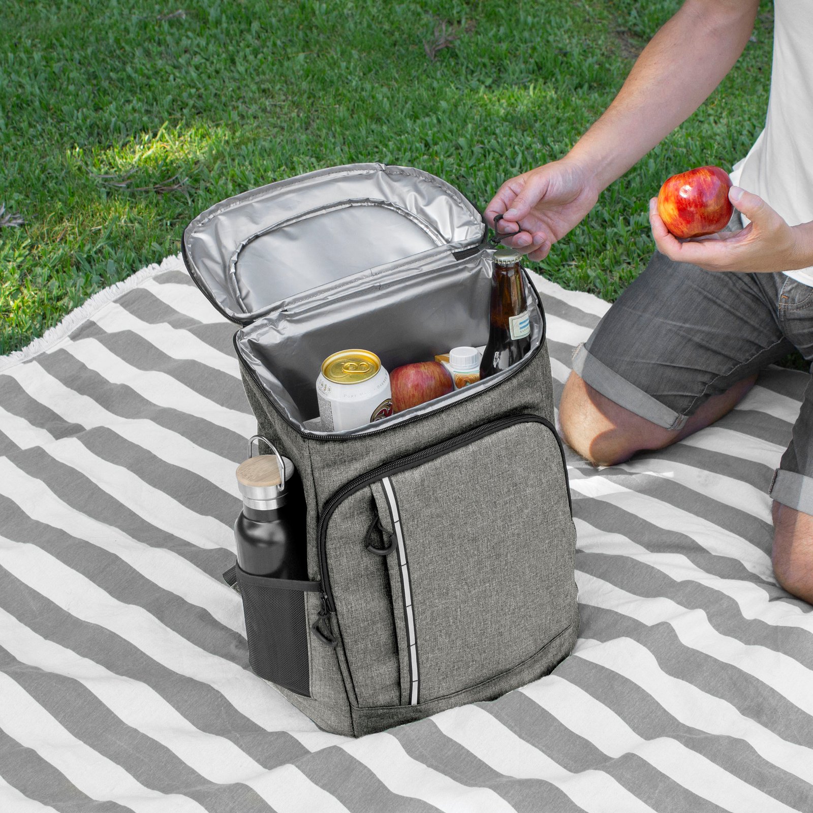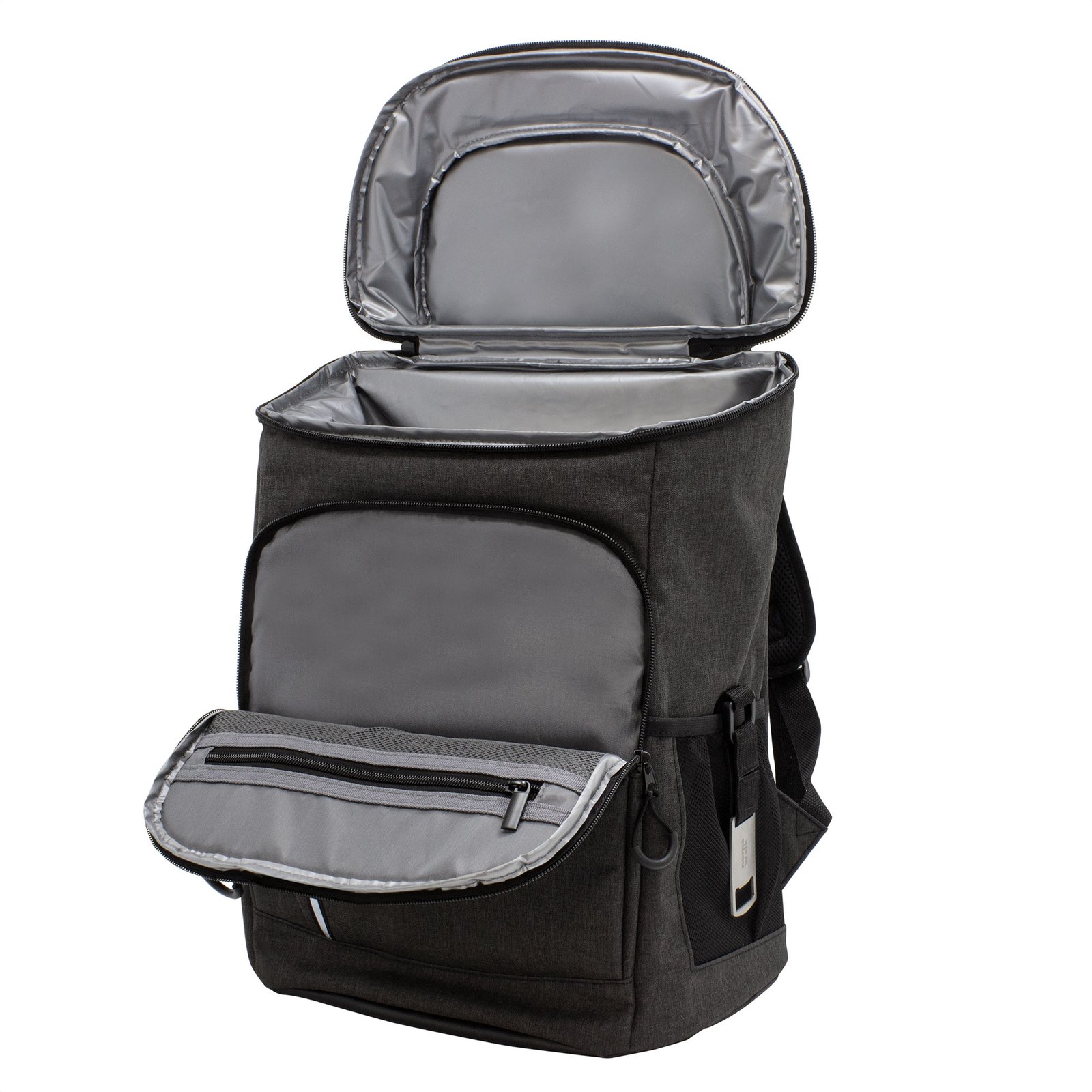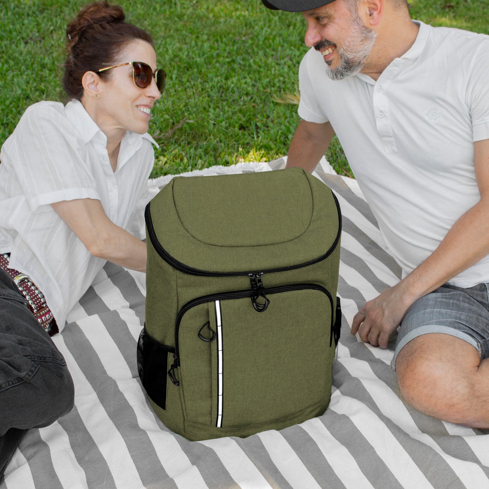 Mochila cooler "DELTA" (SKU K11) para regalos corporativos y campañas de empresa. Compatible con estrategias de regalos corporativos, incluyendo soluciones en textil, sublimación y DTF. 43 x 29 x 18 cm. Capacidad 18 litros aprox. Poliéster Wulong 300D + Interior forrado en PEVA color plata con relleno de espuma de PE. Mochila cooler. Compartimento principal con cierre en la parte superior. Compartimento frontal con cierre, bolsillo interno de red con cierre y bolsillo externo vertical con cierre y banda reflectante. Dos bolsillos laterales de red multipropósito. Incluye destapador de botellas de acero inoxidable (6,3 x 3,3 cm) extraíble. Correas regulables acolchadas. Cierres metálicos. Tiradores de cierre plásticos… Cotiza formato corporativo con personalización de logo y cobertura en Chile.