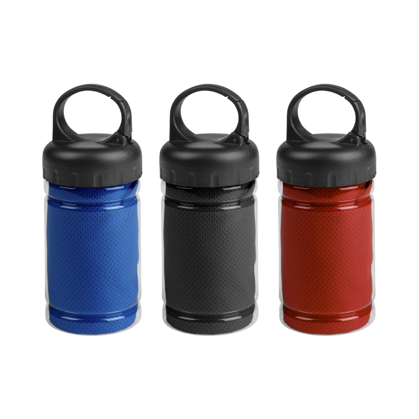 TOALLA "CHILLING" (SKU T569) para regalos corporativos y campañas de empresa. Compatible con estrategias de regalos corporativos, incluyendo soluciones en textil, sublimación y DTF. Medidas toalla 79 x 29 cm / Medidas frasco: Ø6,5 x 17 cm. Políester. Toalla de enfriamiento en un estuche de plástico transparente. Para un efecto refrescante humedezca la toalla con agua o agregue agua en el cilindro e incorpore la toalla. Tapa a rosca con mosquetón. Cotiza formato corporativo con personalización de logo y cobertura en Chile.