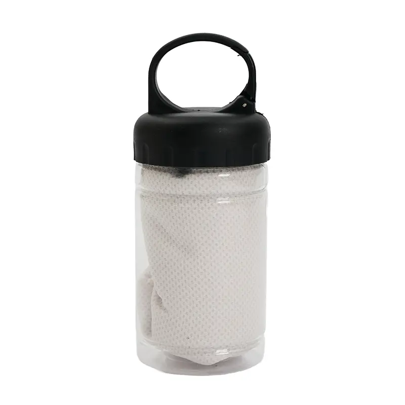 Toalla Refresh (SKU 442) para regalos corporativos y campañas de empresa. Compatible con estrategias de regalos corporativos, incluyendo soluciones en textil, sublimación y DTF. Toalla con estuche portátil. Fabricada en poliéster, PET y polipropileno. Cuenta con toalla de secado rápido (30 × 80 cm) y envase plástico con gancho incorporado para colgar o transportar fácilmente. Es ideal para entrenamientos, actividades al aire libre o viajes, gracias a su tamaño compacto y capacidad de secado rápido. Tahg. Cotiza formato corporativo con personalización de logo y cobertura en Chile.