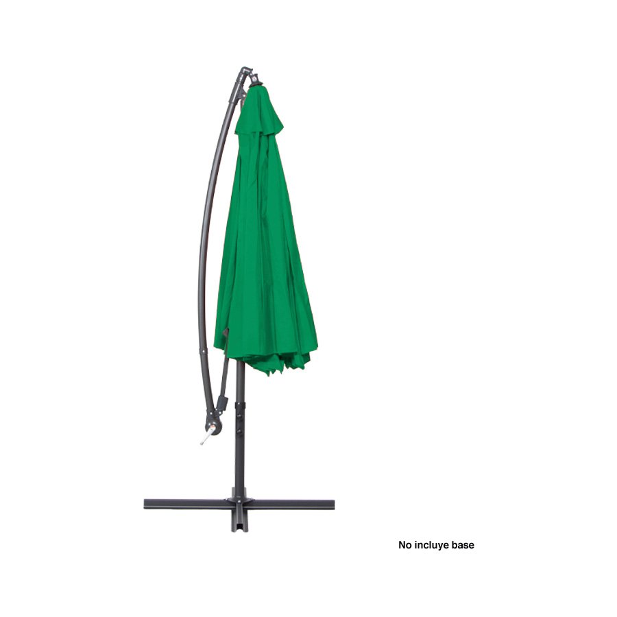 Quitasol lateral colgante "Banana" Ø3M (SKU P13) para regalos corporativos y campañas de empresa. Compatible con estrategias de regalos corporativos, incluyendo soluciones en textil, sublimación y DTF. Quitasol colgante redondo de Ø3m, modelo "Banana", con 8 cascos de lona Poliéster UV impermeable de 160g. Contiene varas reforzadas de Acero recubierto de 12 x 18mm, asta de Acero recubierto de 48mm, sistema de apertura manual. • Tamaño: Ø 3 m (abierto) x Alto 2.4 m • Colores:Rojo (03), Verde (06), Negro (08), Beige (09). • Sugerencia: Serigrafía. • Peso: 13 kg • Material: Acero / Poliéster Cotiza formato corporativo con personalización de logo y cobertura en Chile.