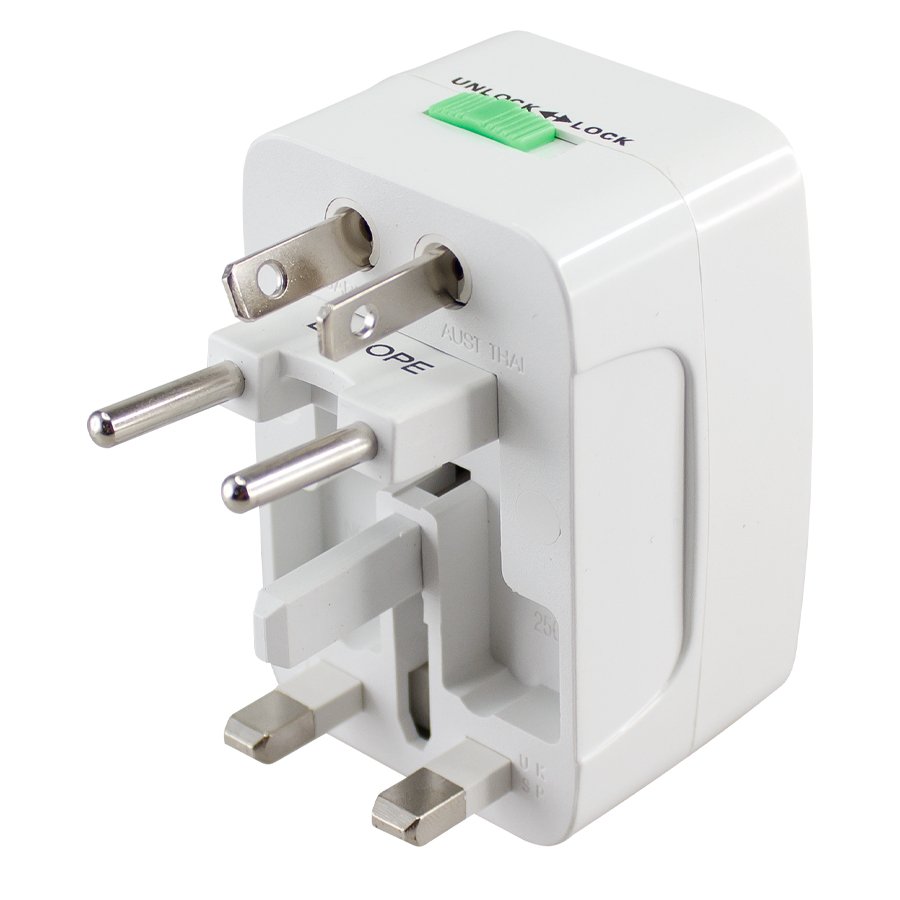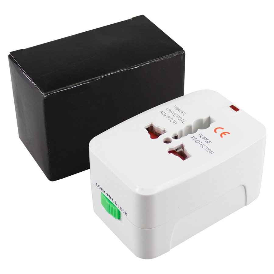 Adaptador Universal (SKU C21) para regalos corporativos y campañas de empresa. Compatible con estrategias de regalos corporativos, incluyendo soluciones en textil, sublimación y DTF. Adaptador de Enchufes Universal. USA, Europa, Asia, Sudamérica, Reino Unido, China, Chile. Accesorio indispensable en cualquier viaje. • Tamaño: 5 x 7.4 x 4 cm. • Colores:Blanco (01). • Sugerencia: Serigrafía, Tampografía. • Peso: 94 g. Cotiza formato corporativo con personalización de logo y cobertura en Chile.