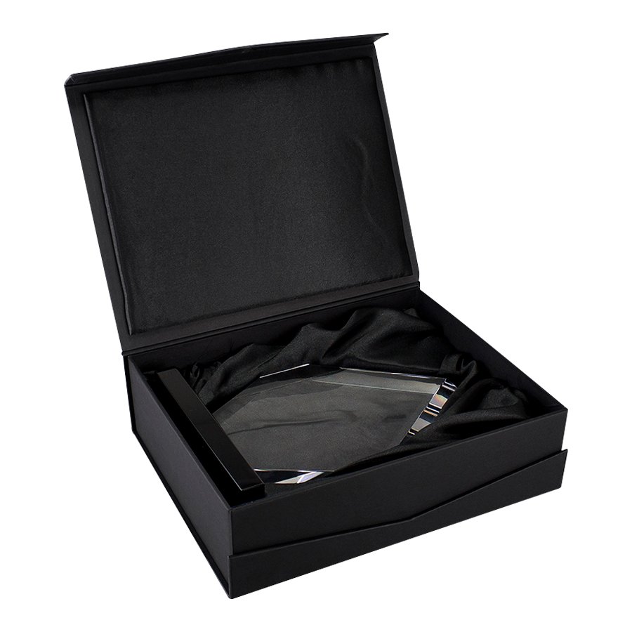 Trofeo Galvano Cristal Black Diamond (SKU A61) para regalos corporativos y campañas de empresa. Compatible con estrategias de regalos corporativos, incluyendo soluciones en textil, sublimación y DTF. Deluxe Trofeo grande de Cristal modelo "Black Diamond" con base negra. Presentación en caja de cartón forrado negro. • Tamaño: 17 x 22 x 6 cm. • Colores: • Sugerencia: Grabado Láser. • Presentación: En caja de cartón forrado negro. Cotiza formato corporativo con personalización de logo y cobertura en Chile.