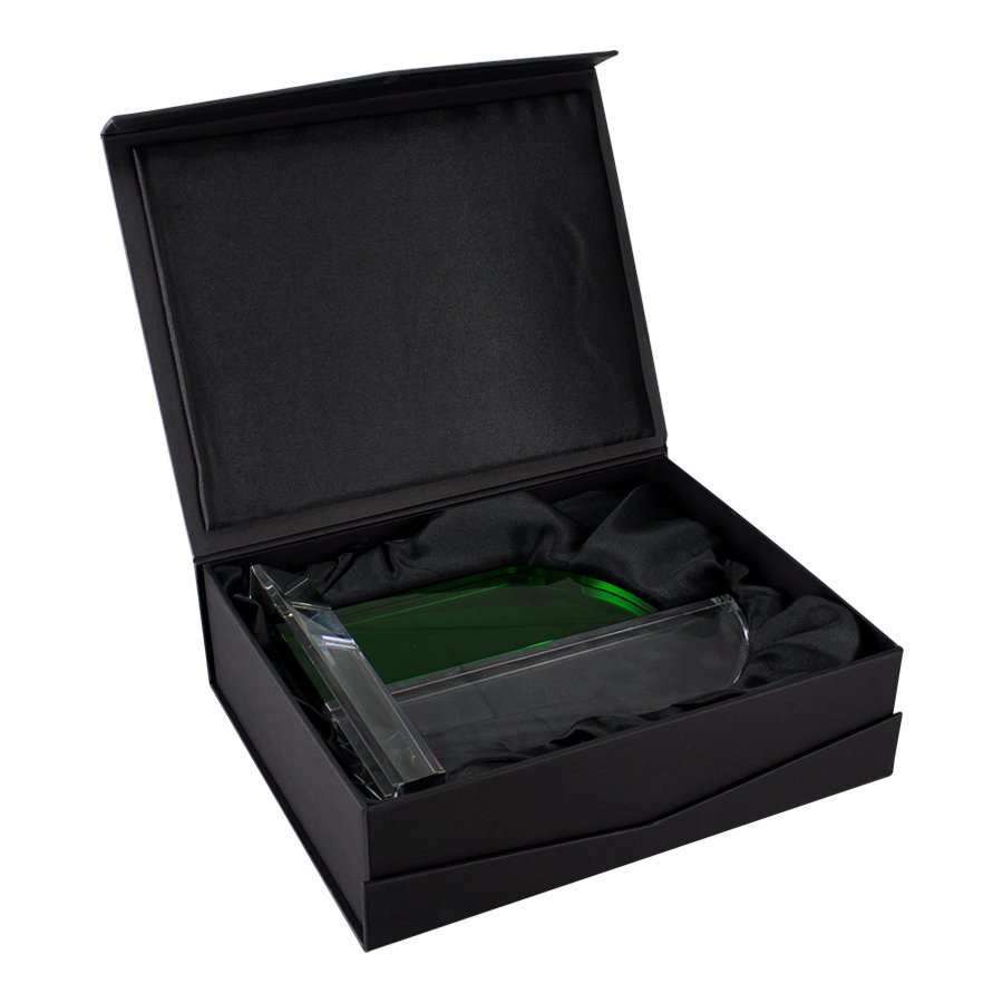 Trofeo Galvano Cristal Catedral (SKU A62) para regalos corporativos y campañas de empresa. Compatible con estrategias de regalos corporativos, incluyendo soluciones en textil, sublimación y DTF. Deluxe Trofeo grande de Cristal modelo "Catedral" con aplicación de cristal-color. Presentación en caja de cartón forrado negro. • Tamaño: 18 x 20 x 6 cm. • Colores:Azul (02), Rojo (03), Verde (06), Negro (08). • Sugerencia: Grabado Láser. • Presentación: En caja de cartón forrado negro. Cotiza formato corporativo con personalización de logo y cobertura en Chile.