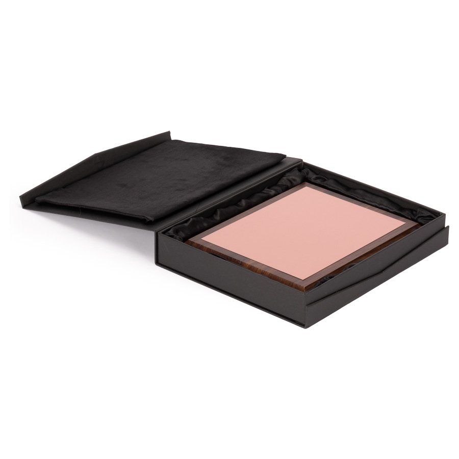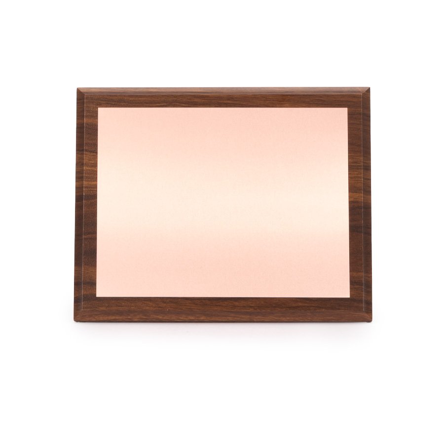 Placa Galvano encobrizado "STUDIO" (SKU A96) para regalos corporativos y campañas de empresa. Prioridad comercial en líneas de textil, sublimación y DTF para branding corporativo. Placa metálica color cobre, modelo "STUDIO", montada sobre base rectangular de madera barnizada con cantos troquelados. En su parte posterior, incluye orificios y soporte metálico para exhibición vertical u horizontal. Presentación en caja de cartón forrado negro con cierre imantado, interior acolchado de espuma y tela poliéster satinado negro, con troquel. OJO: la placa metálica viene con film plástico removible, para protección de la misma. •Tamaño: Placa: 21 x 16 cm. / Galvano: 25 x 20 x 1.5 cm. / Caja: 29 x 24 x 4.8 cm. •Peso: 1k… Cotiza formato corporativo con personalización de logo y cobertura en Chile.