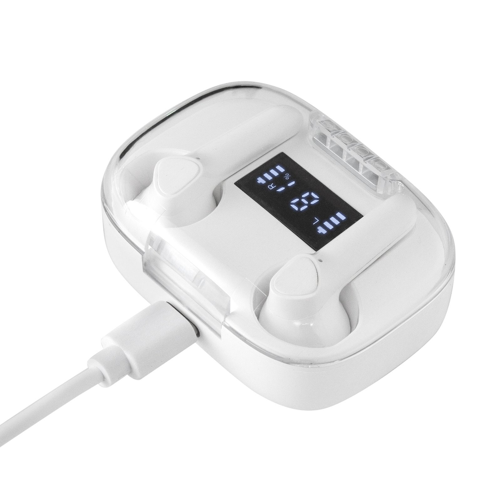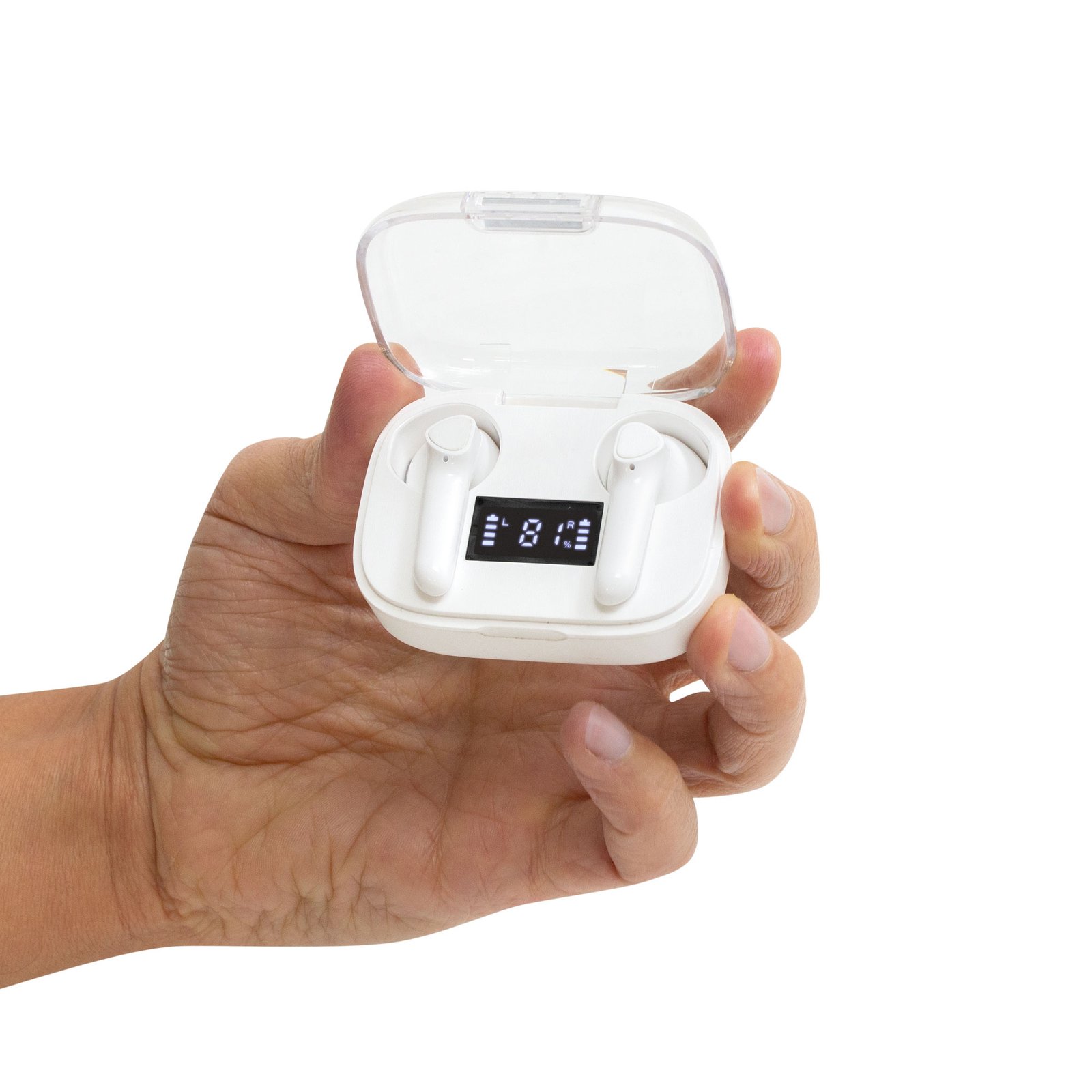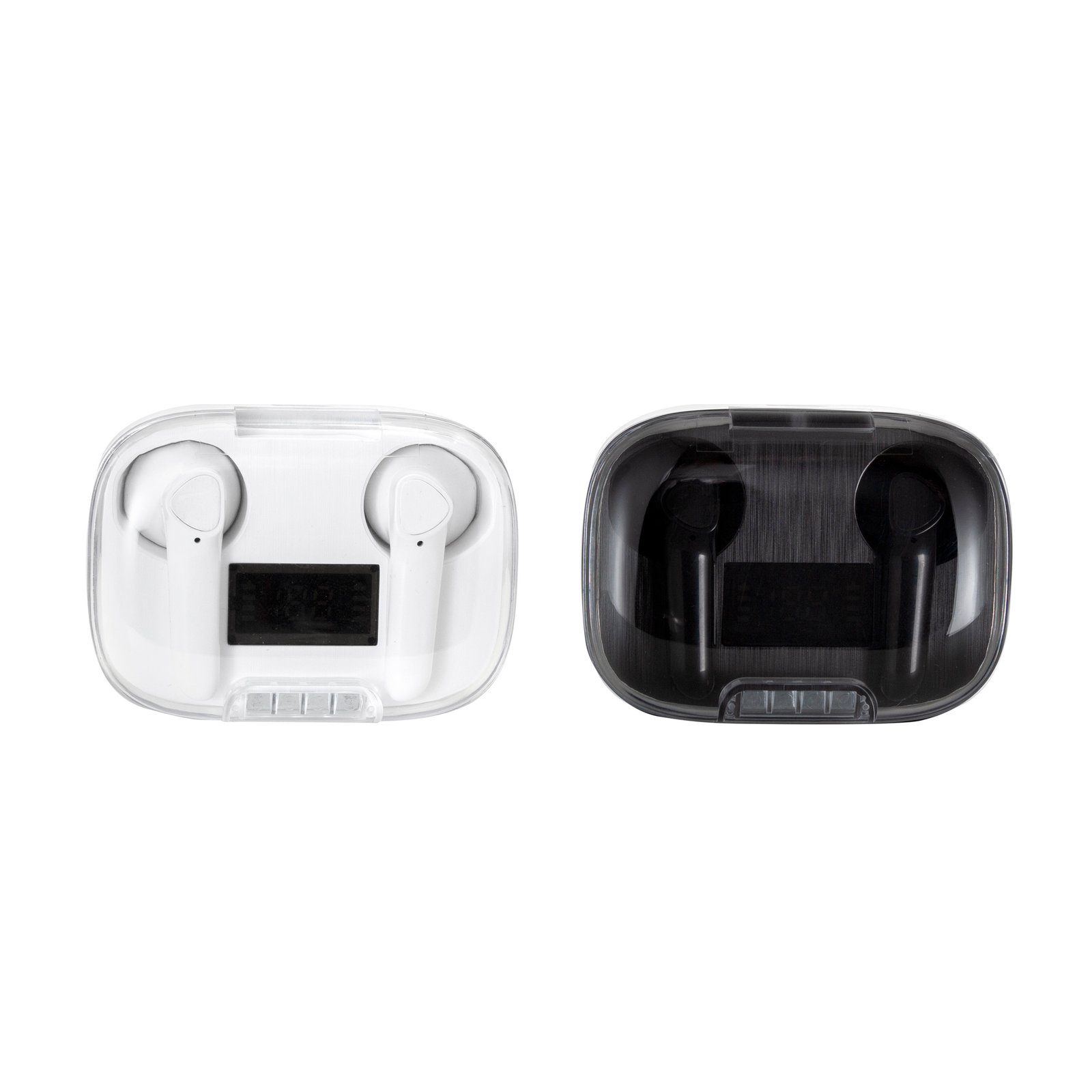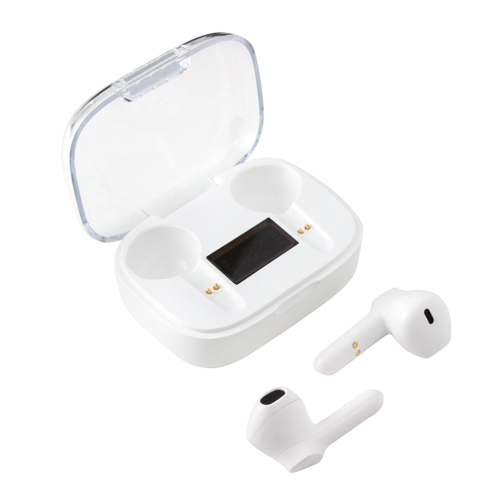 Auriculares bluetooth "JACKSON" (SKU EC764) para regalos corporativos y campañas de empresa. Compatible con estrategias de regalos corporativos, incluyendo soluciones en textil, sublimación y DTF. Sonido nítido, sin cablesAuriculares Bluethooth. Pantalla digital y tapa transparente. Rango de alcance: 15 metros. Tiempo de reproducción: aprox. 3 horas. Tiempo de Carga: 1 hora Duración de la carga en inactividad: 200 horas. Cable de carga USB tipo C en color blanco para auriculares blancos, y en color negro para la versión en negro. Medidas: 6 x 4,5 x 2,5 mm. Material: Plastico ABS. Versión Bluetooth: 5.1 Capacidad Batería: 30 mAh para cada auricular. Capacidad Batería caja de carga: 250 mAh Presentación: en caja de regalo blanco… Cotiza formato corporativo con personalización de logo y cobertura en Chile.
