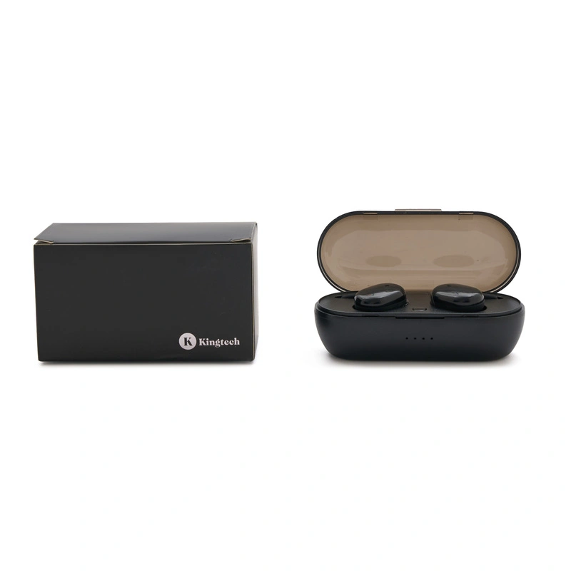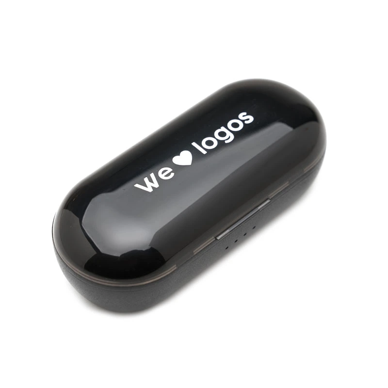 Auriculares Concerto (SKU 109) para regalos corporativos y campañas de empresa. Compatible con estrategias de regalos corporativos, incluyendo soluciones en textil, sublimación y DTF. Auriculares inalámbricos con estuche de carga y micrófono incorporado. Posee tecnología bluetooth 5.0. Capacidad del auricular es de 55mAh y su capacidad de carga es de 300mAh. Cuenta con cobertura bluetooth en una distancia de 10 metros y su duración en funcionamiento es de 3 horas seguidas. Mantiene la carga sin uso por 120 horas y el tiempo de carga es de 50 minutos. Funciones touch: un toque para pausar/reproducir música, dos toques para redial. Medidas: 8 x 3,5 cm. Kingtech. Cotiza formato corporativo con personalización de logo y cobertura en Chile.