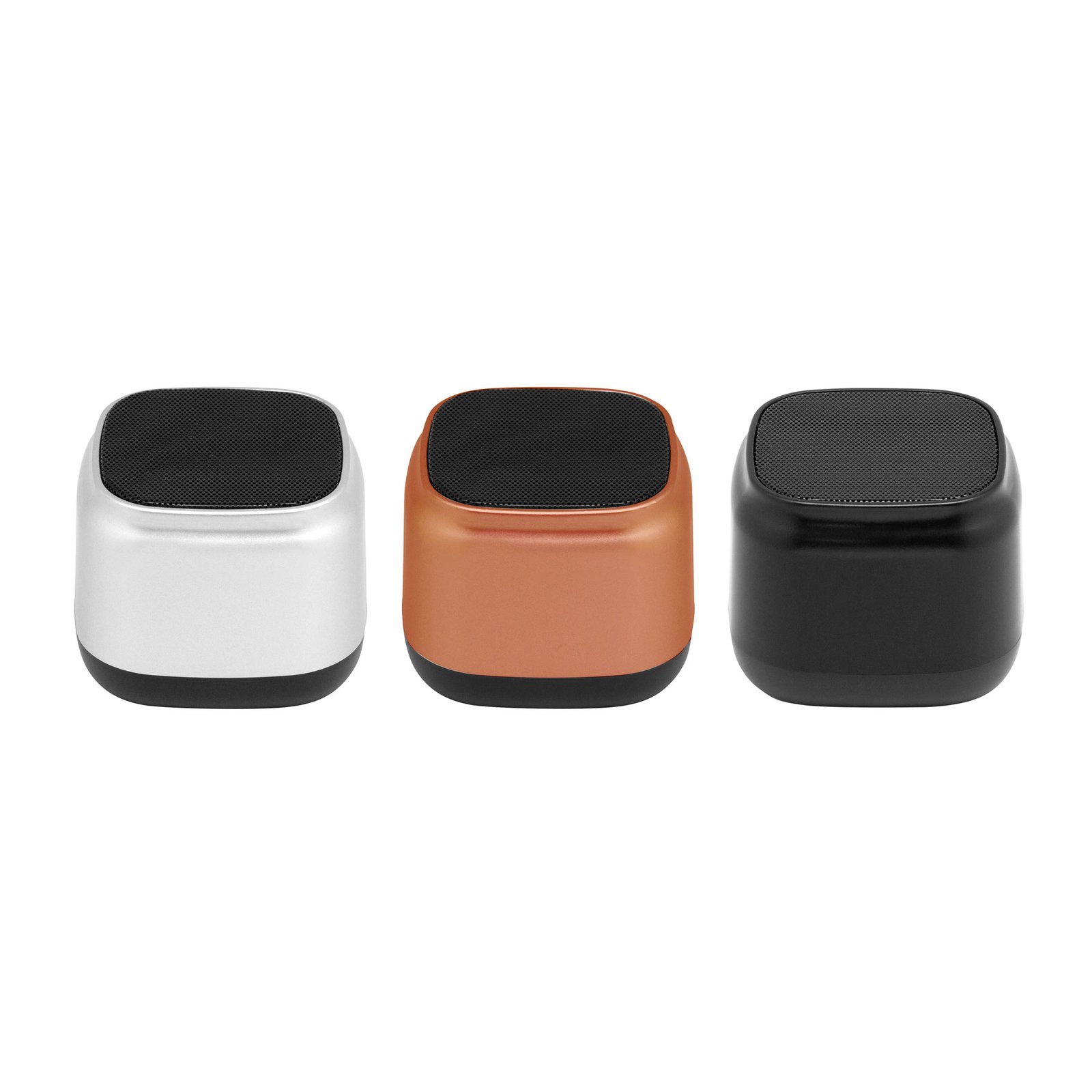 Parlante bluetooth "SURROUND" (SKU EC755) para regalos corporativos y campañas de empresa. Compatible con estrategias de regalos corporativos, incluyendo soluciones en textil, sublimación y DTF. Sonido potente y estilo modernoParlante bluetooth. Posee botonera de silicona en la base y malla metálica negra en la parte superior. La base del parlante es antideslizante. Micrófono incorporado. Permite recibir llamadas. Cable de carga y conexión USB tipo C color negro. Medidas: 7 x 7 x 5,8 cm. Materiales: Plastico ABS con pintura al óleo metalizada y metal. Potencia: 3W. Versión bluetooth: 5.0. Capacidad de la batería: 800 mAh Presentación: en caja de regalo kraft Cotiza formato corporativo con personalización de logo y cobertura en Chile.
