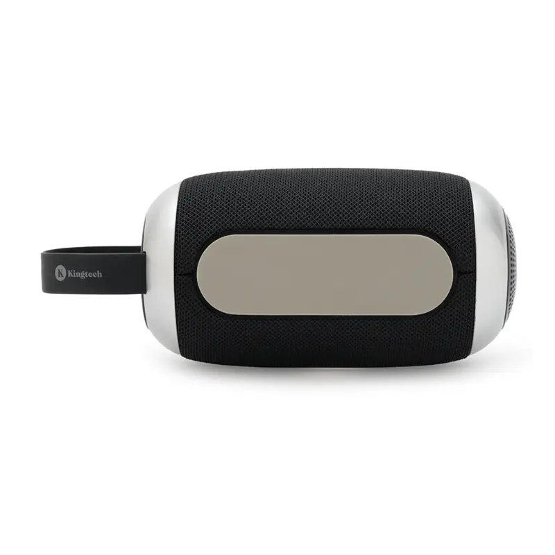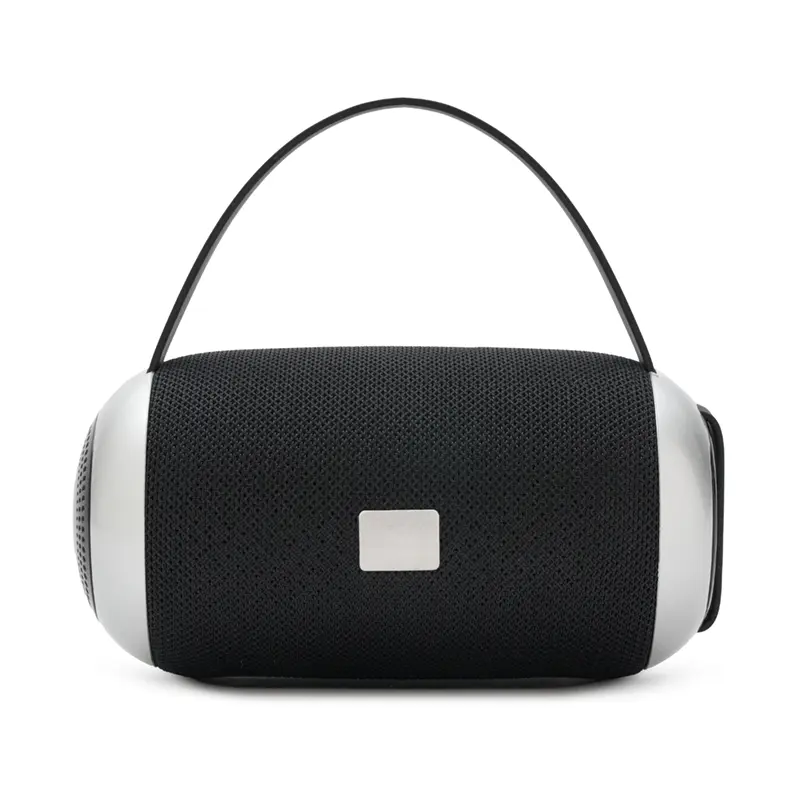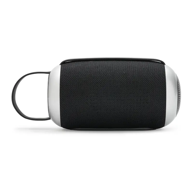 Parlante Polifonic (SKU 354) para regalos corporativos y campañas de empresa. Compatible con estrategias de regalos corporativos, incluyendo soluciones en textil, sublimación y DTF. Parlante portátil Bluetooth de color negro con detalles en gris. Cuenta con una correa de agarre y una base que proporciona un mejor apoyo y estabilidad al usarlo en diversas superficies. ESPECIFICACIONES TECNICAS: Distancia de trabajo: 10 m | Relación señal/ruido (SNR): 295dB | Batería: 3.7V 1200mAh | Tiempo de reproducción: 15-20 h | Potencia: 40/5W +2 | Respuesta de frecuencia: 50Hz-20kHz | Carga: 5V 1500mA. En el lado izquierdo del parlante, tiene el puerto de carga DC 5V, una ranura USB, una ranura TF, una entrada AUX, un interr… Cotiza formato corporativo con personalización de logo y cobertura en Chile.