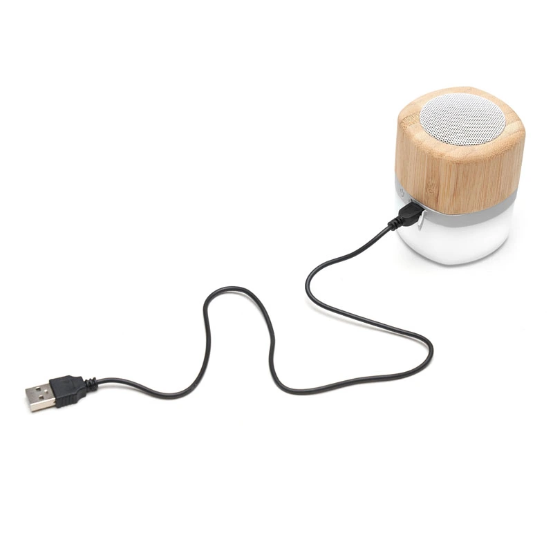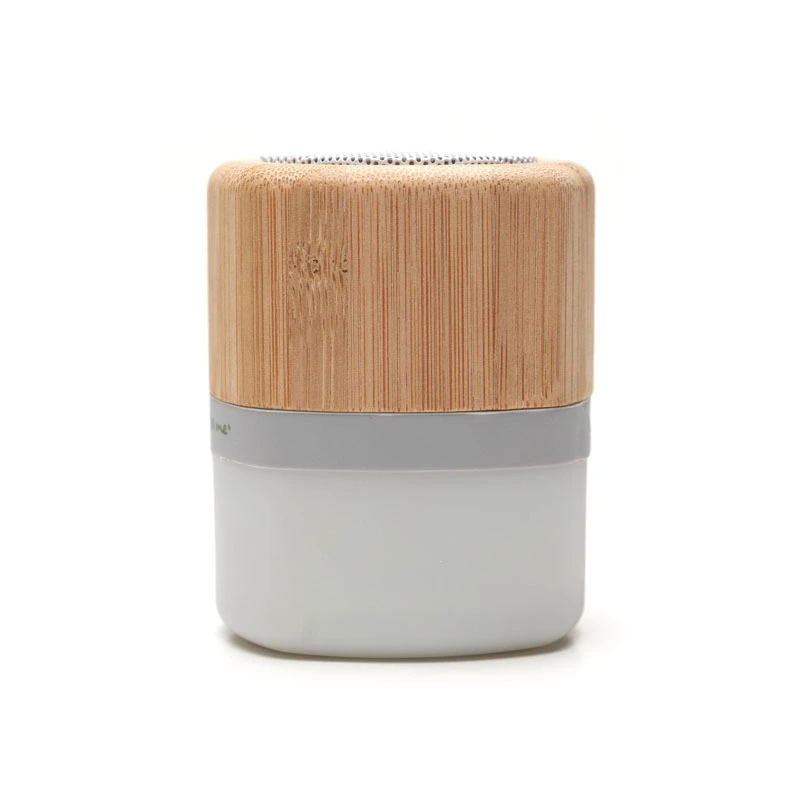 Parlante Track (SKU 82) para regalos corporativos y campañas de empresa. Compatible con estrategias de regalos corporativos, incluyendo soluciones en textil, sublimación y DTF. Parlante portátil con tecnología Bluetooth. Realizado en combinación de ABS con Silicona y bamboo, con iluminación en la base. Características técnicas: Batería de 300mAh | Poder del parlante: 3W | Frecuencia: 200Hz-20KHz | Conexión: 5V / 500mA | Distancia de alcance: 10 Metros | Peso 150gr | Medidas: 6 x 6 x 7,5 cm. ReUseMe. Incluye Gift Box confeccionada en cartulina Kraft. Cotiza formato corporativo con personalización de logo y cobertura en Chile.