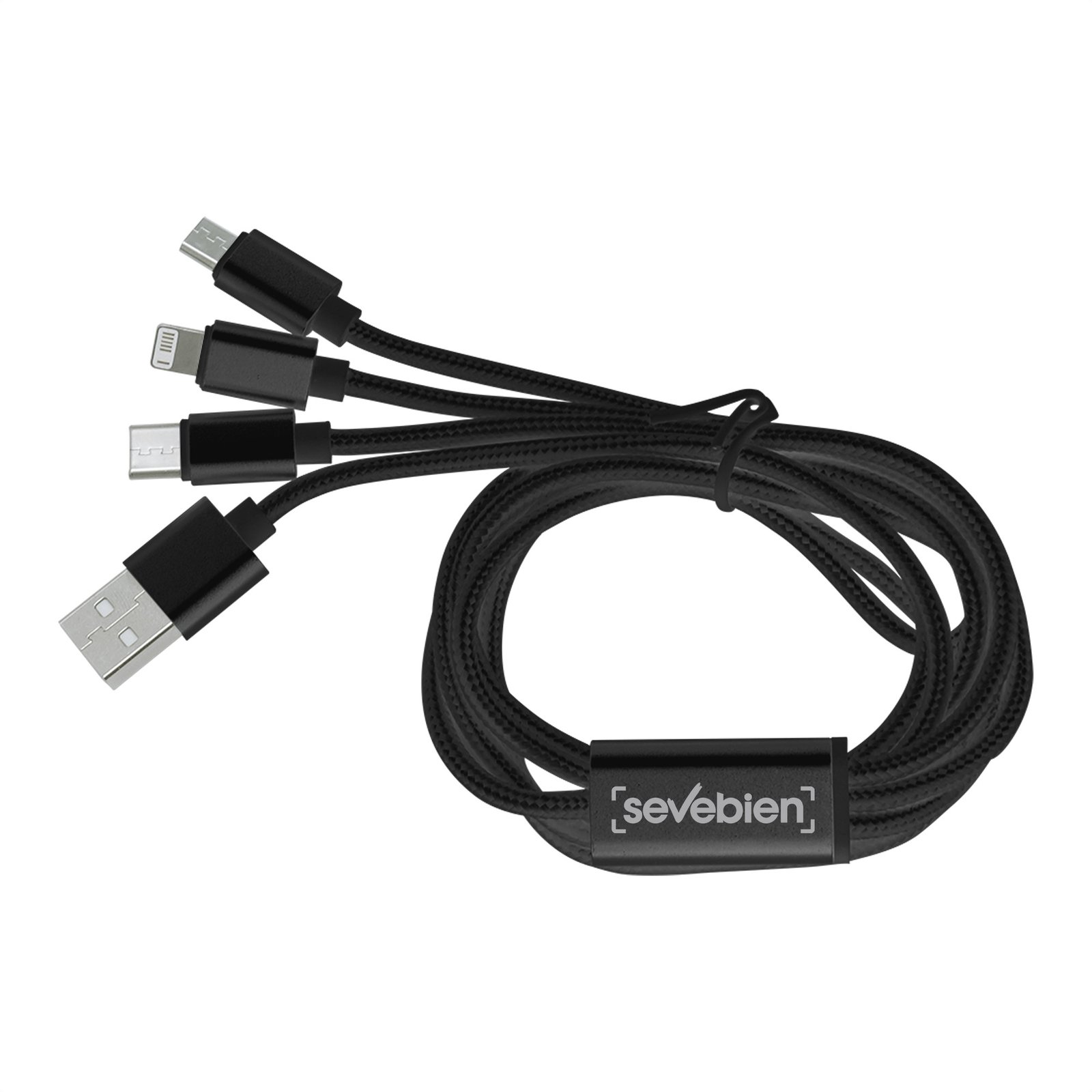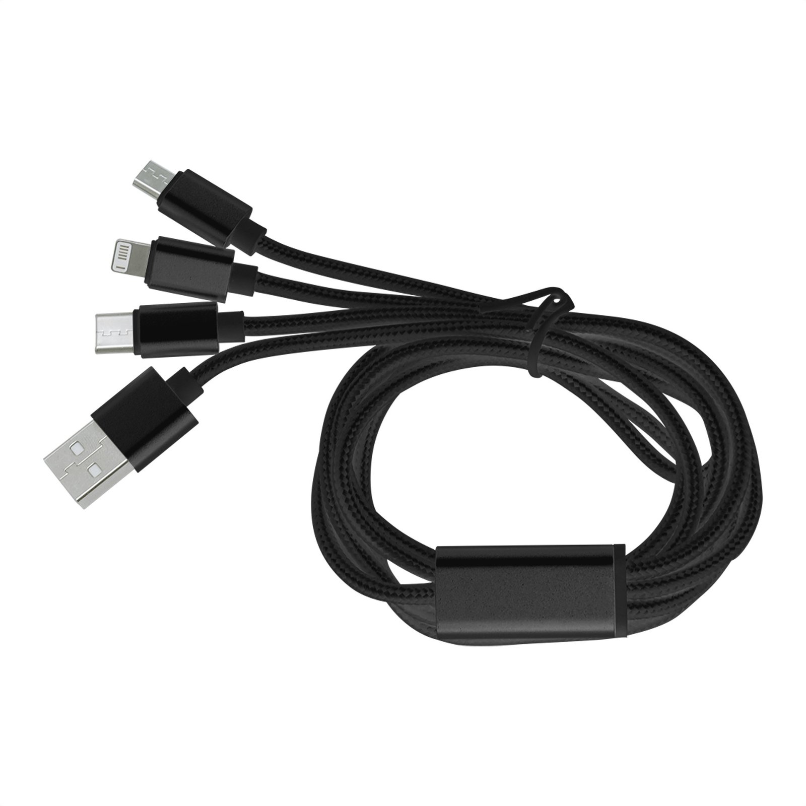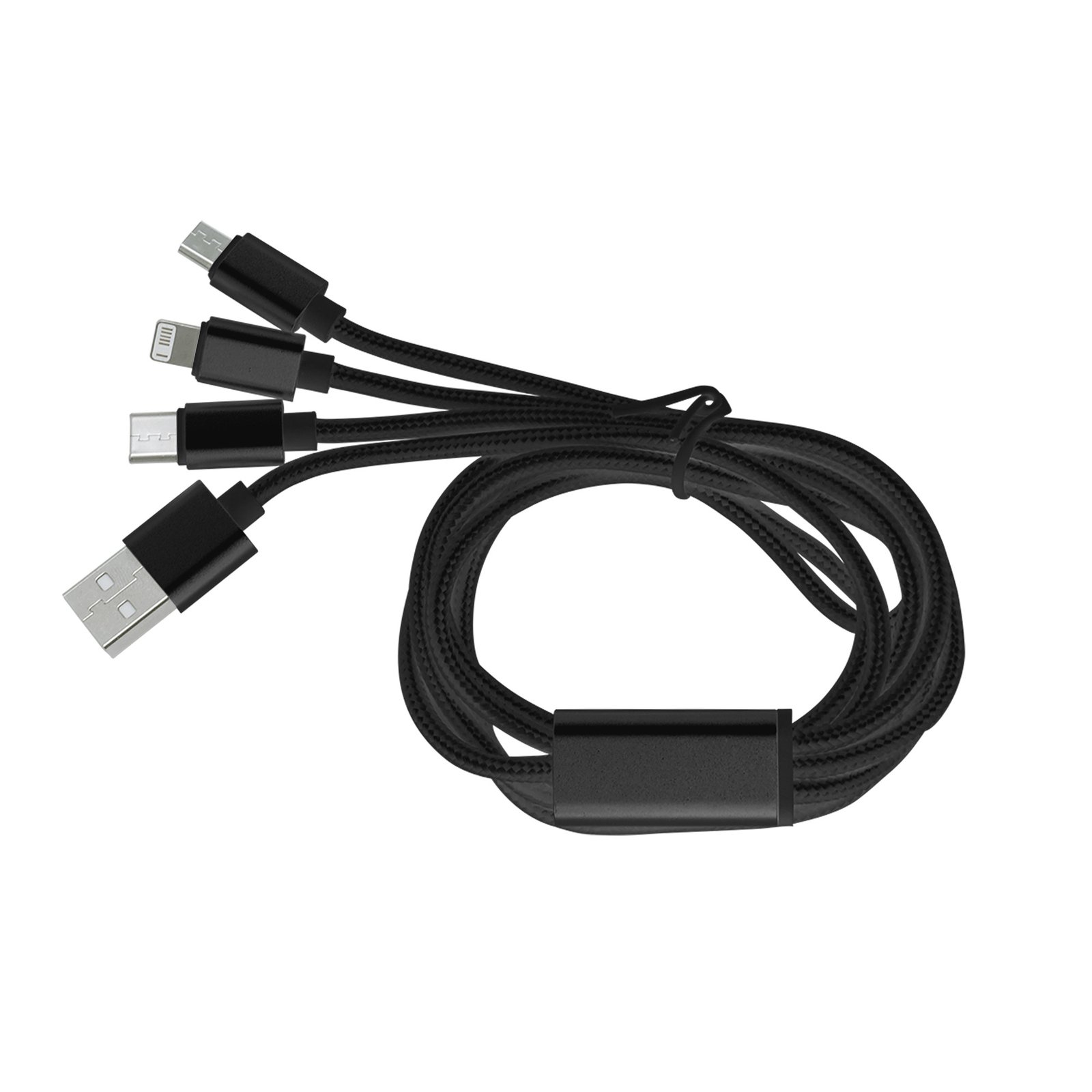 Cable con adaptador "MADISON" (SKU EC736) para regalos corporativos y campañas de empresa. Compatible con estrategias de regalos corporativos, incluyendo soluciones en textil, sublimación y DTF. 120 cm. Aluminio y Nylon. Cable con entrada USB y diferentes adaptadores: Iphone, Type C y Android. Viene dentro de una bolsa plásticas con cierre ziploc. Cotiza formato corporativo con personalización de logo y cobertura en Chile.