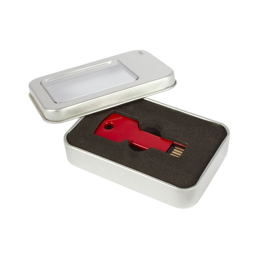 USB Pendrive 16GB con forma de llave (SKU U16) para regalos corporativos y campañas de empresa. Compatible con estrategias de regalos corporativos, incluyendo soluciones en textil, sublimación y DTF. USB Pendrive 2.0 con 16GB de capacidad, con forma de llave metálica. Ideal para llevar en tu llavero personal. Presentación en caja metálica pequeña con ventana. • Tamaño: Pendrive: 5.5 x 2.4 x 0.3 cm / Caja: 9 x 6.2 x 1.7 cm • Capacidad: 16GB • Colores: Azul (02), Rojo (03). • Sugerencia de Impresión: Serigrafía, Láser, Pantógrafo. • Presentación: Caja metálica pequeña con ventana • Material: Aluminio Cotiza formato corporativo con personalización de logo y cobertura en Chile.