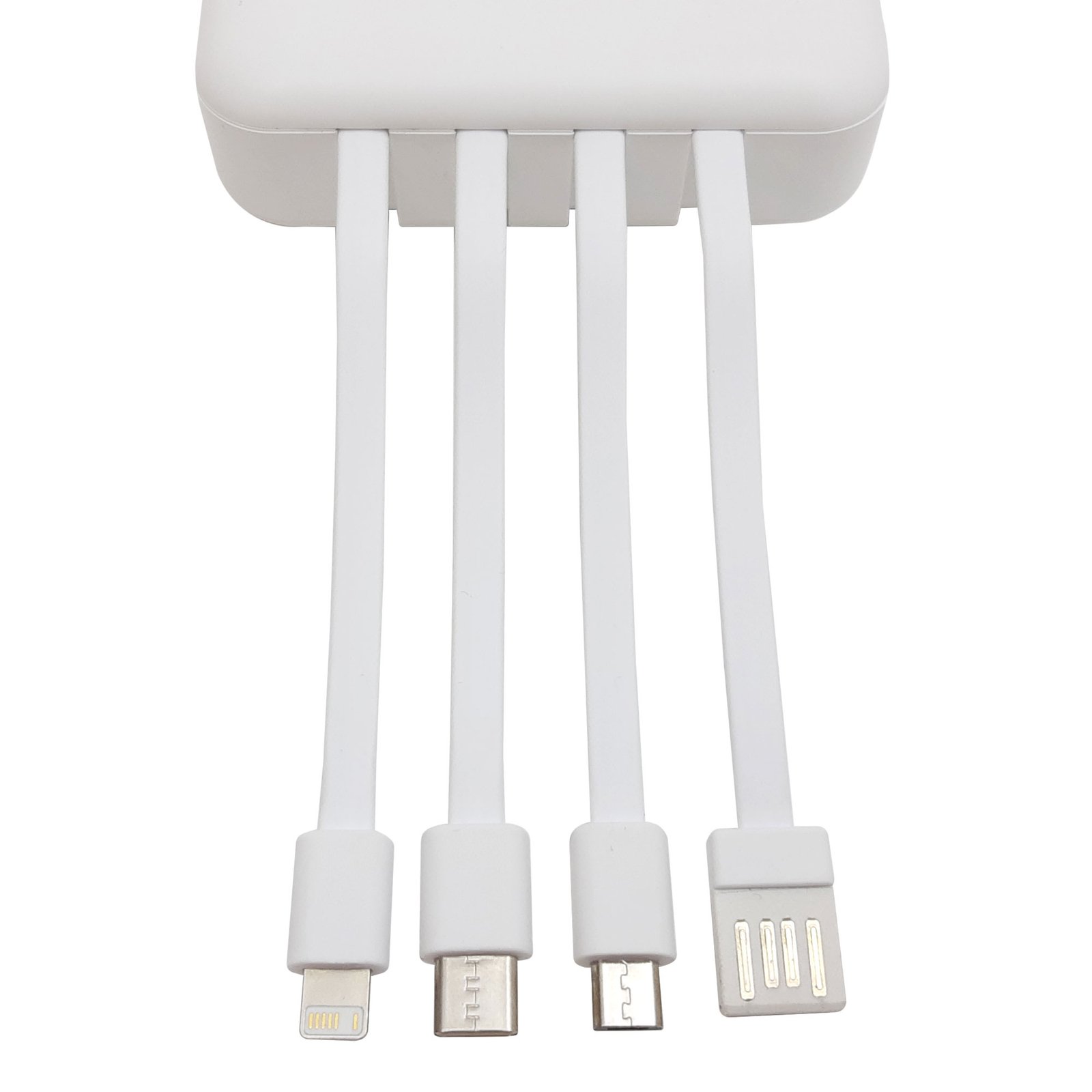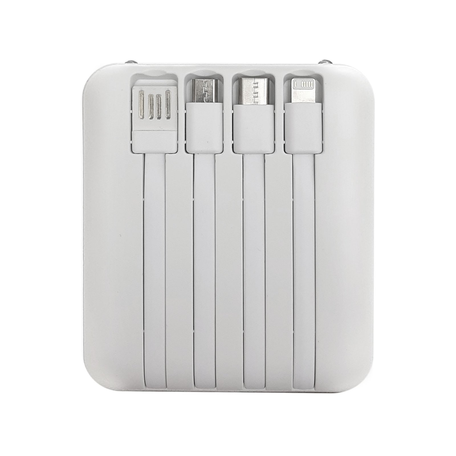 Power bank multipuerto "CONNECTICUT" (SKU EC750) para regalos corporativos y campañas de empresa. Compatible con estrategias de regalos corporativos, incluyendo soluciones en textil, sublimación y DTF. 8,8 x 7,9 x 2,6 cm. Capacidad: 5000 mAh. Plástico ABS acabado mate. Power bank multipuerto. Pantalla digital. Doble salida USB. Entradas micro-USB y USB tipo C. Salida de carga rápida 2A. Linterna dual led. 4 cables de carga integrados: USB, Micro USB, Tipo C y IPhone. Puede cargar hasta 5 dispositivos al mismo tiempo. Presentación en caja de regalo. Cotiza formato corporativo con personalización de logo y cobertura en Chile.